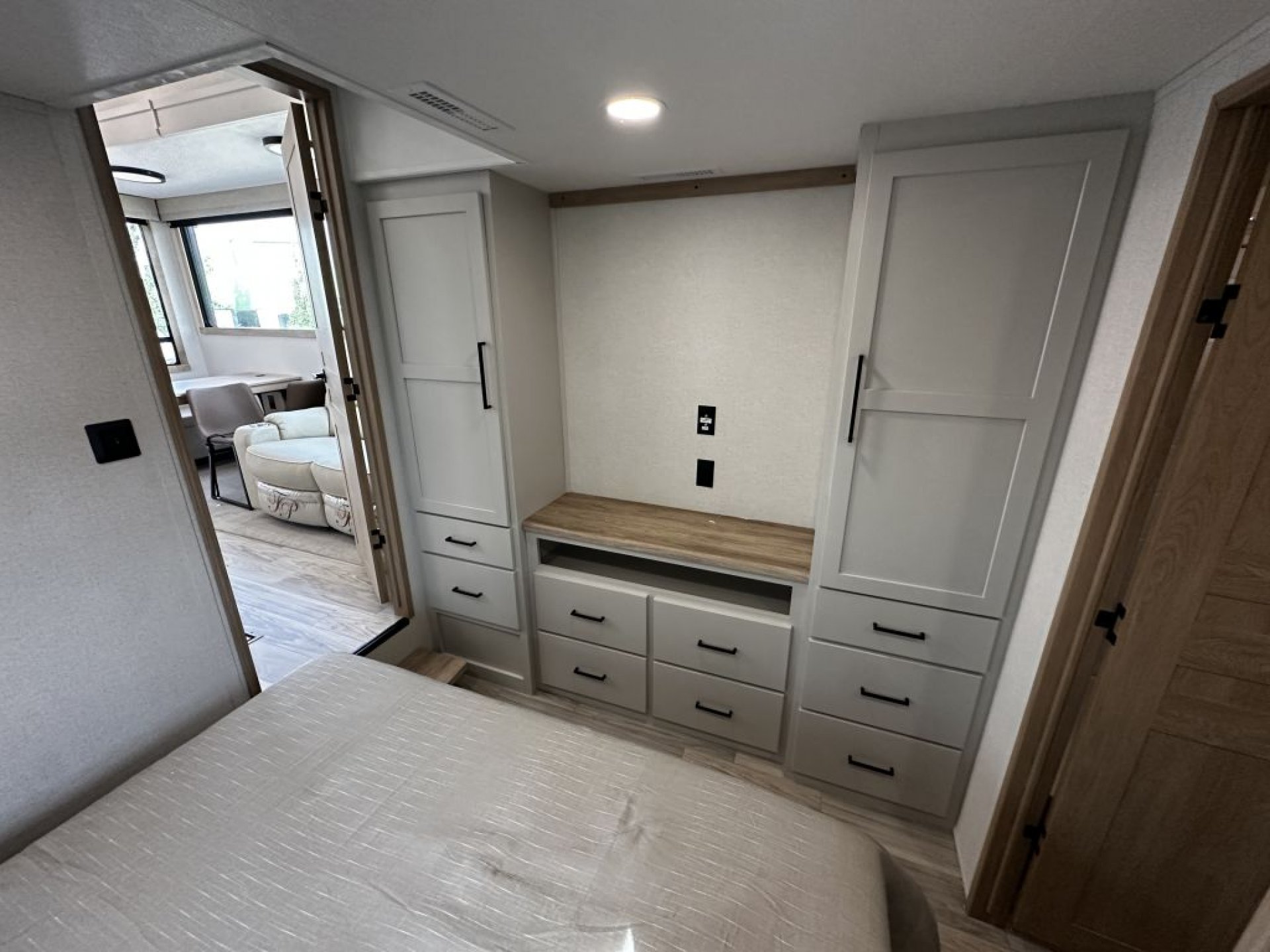 2 Queen Bedrooms – Front and rear suites with privacy, comfort, and full storage solutions