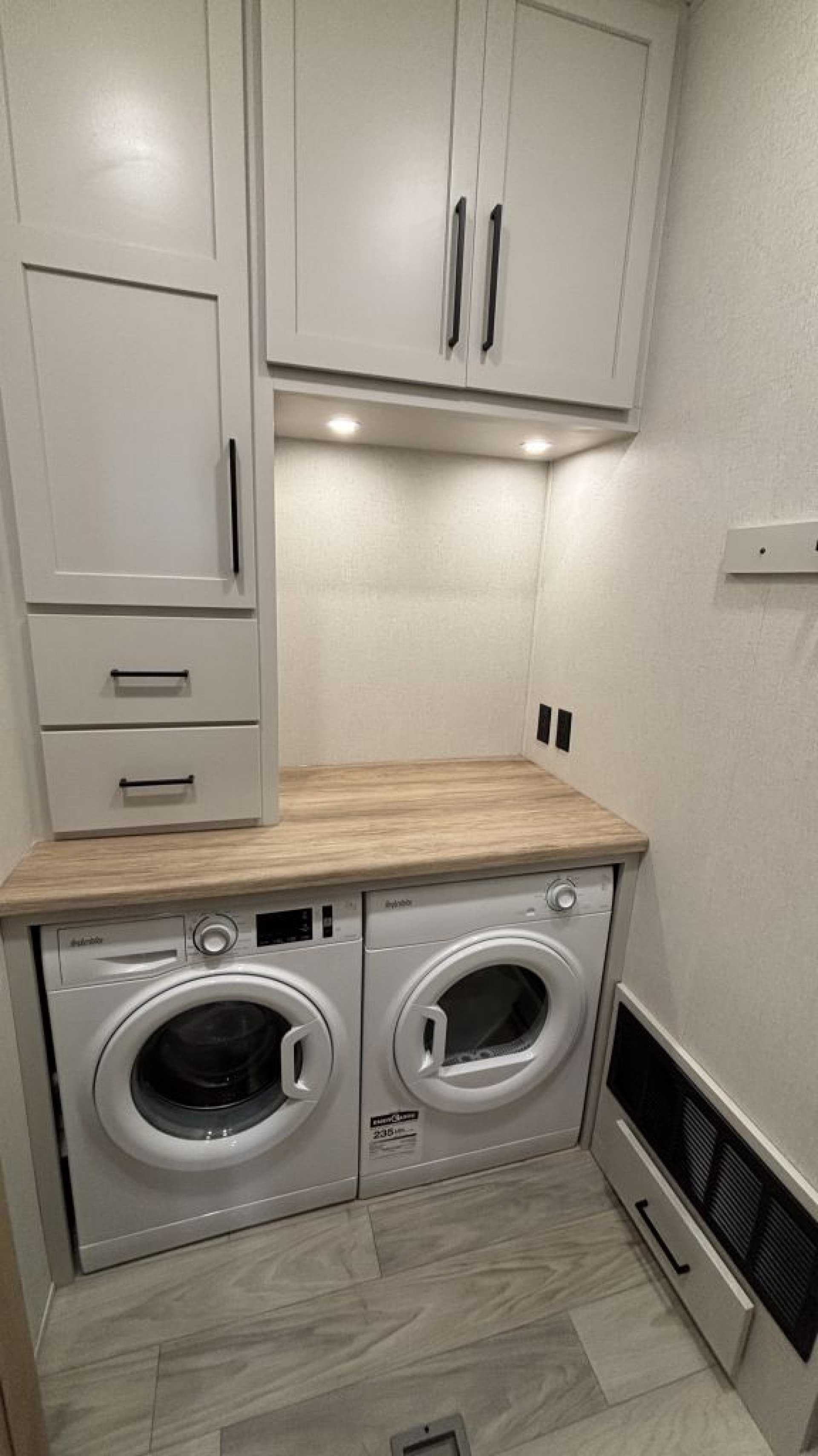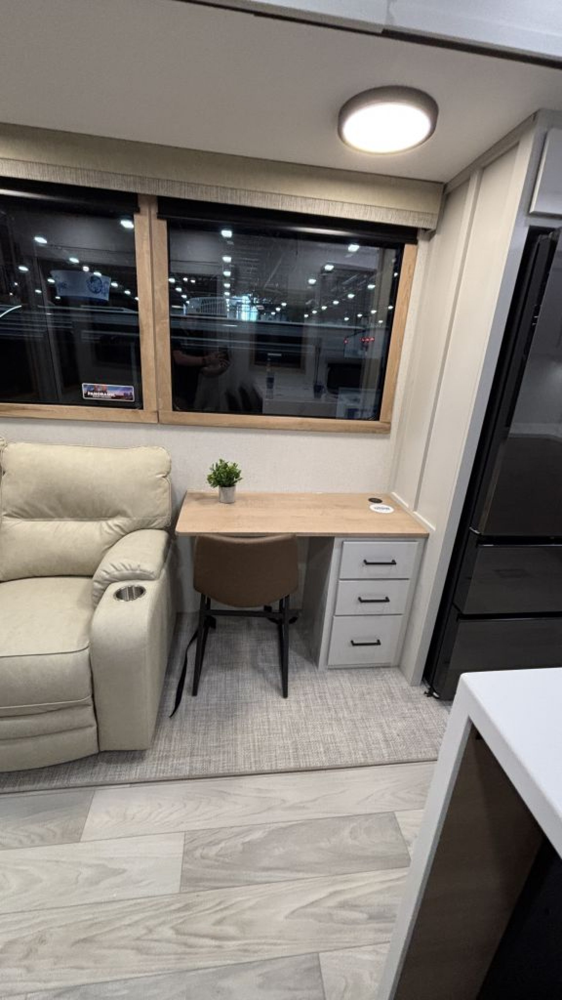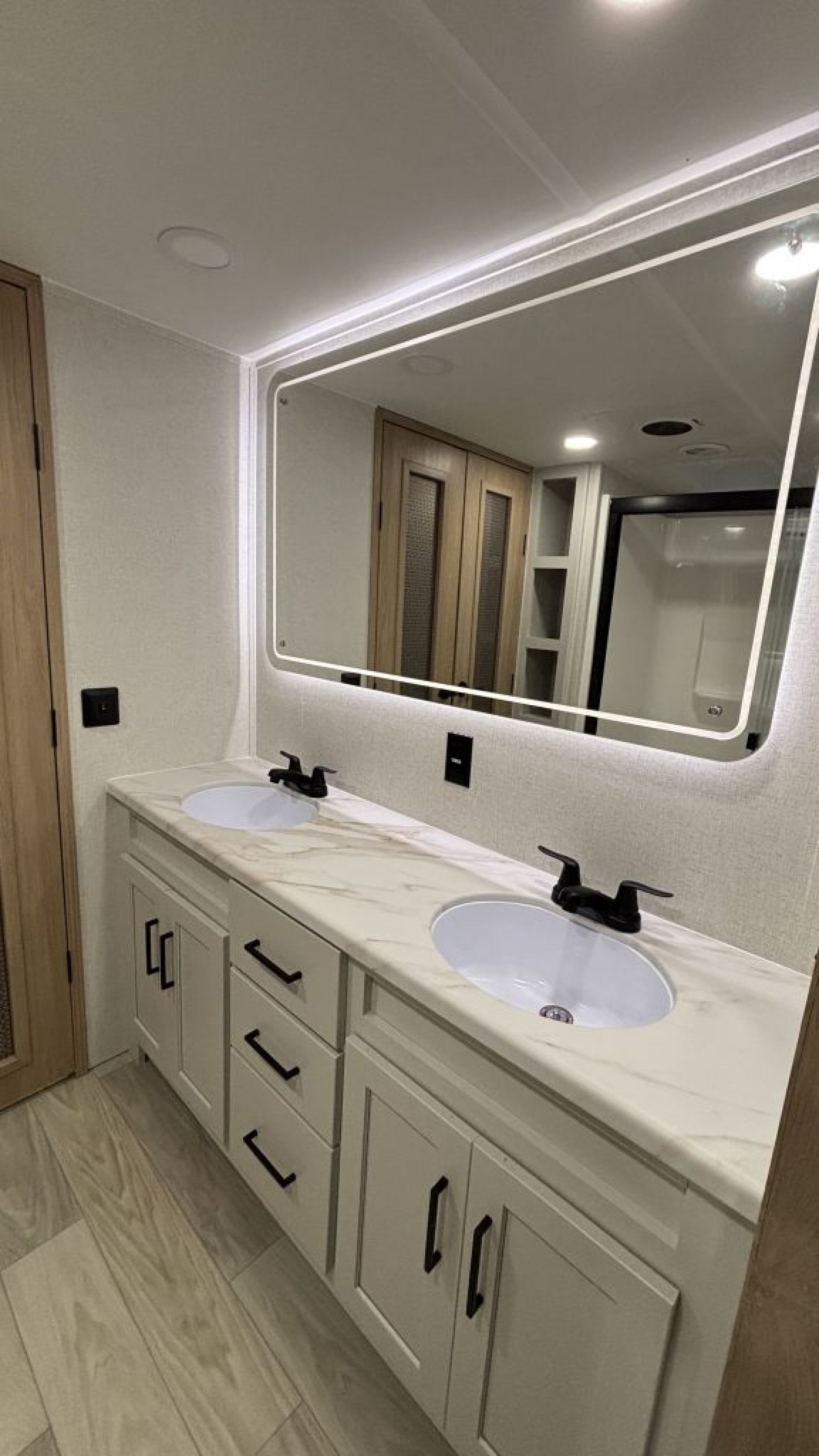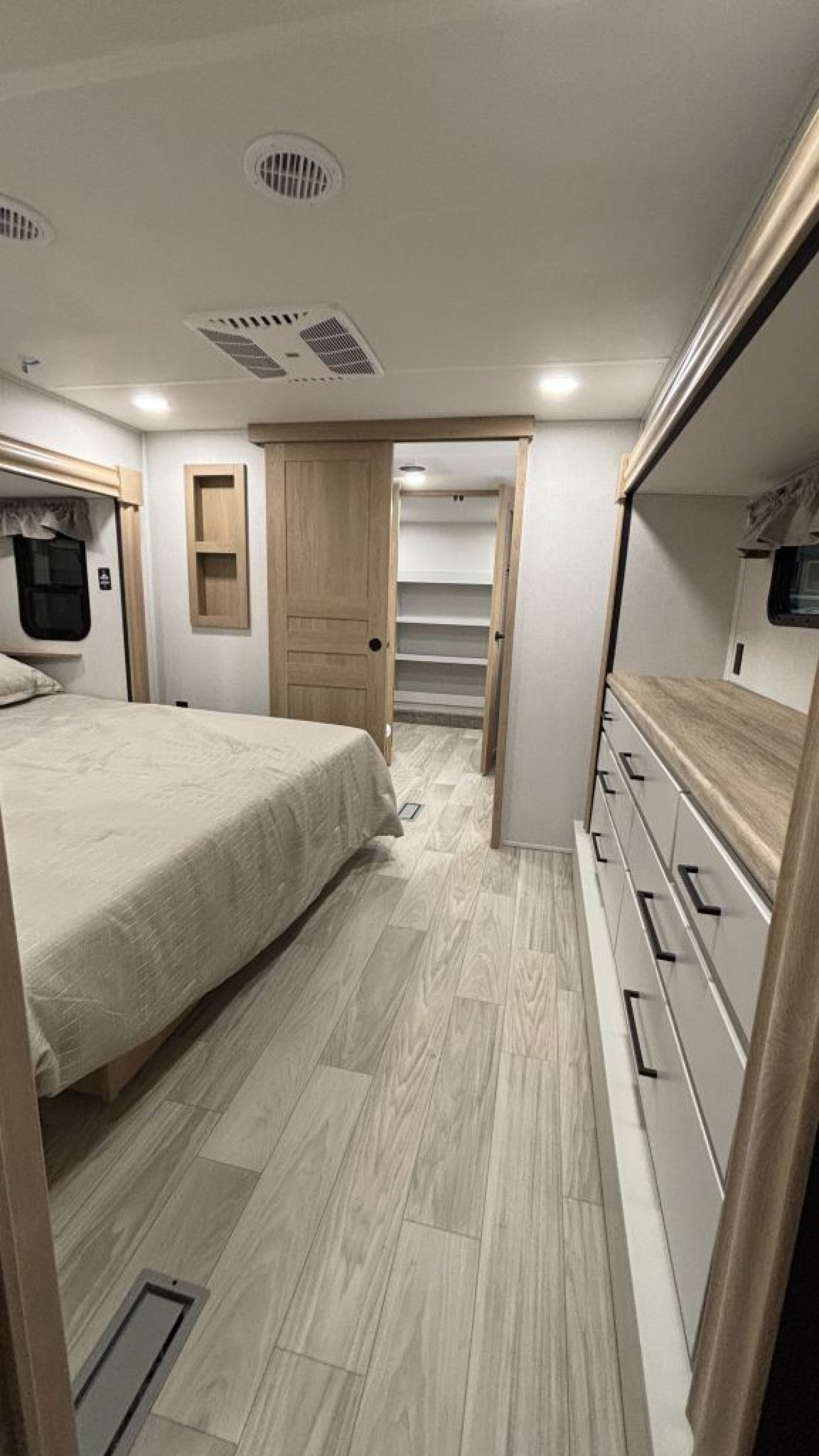 Smart Design & Comfort ThroughoutRelax in the spacious living area with a 50" flatscreen smart TV, soft close drawers and cabinets, and residential-quality finishes. With two whisper-quiet 15,000 BTU A/Cs, heated and enclosed tanks, and a 60,000 BTU tankless on-demand water heater, comfort follows you year-round.