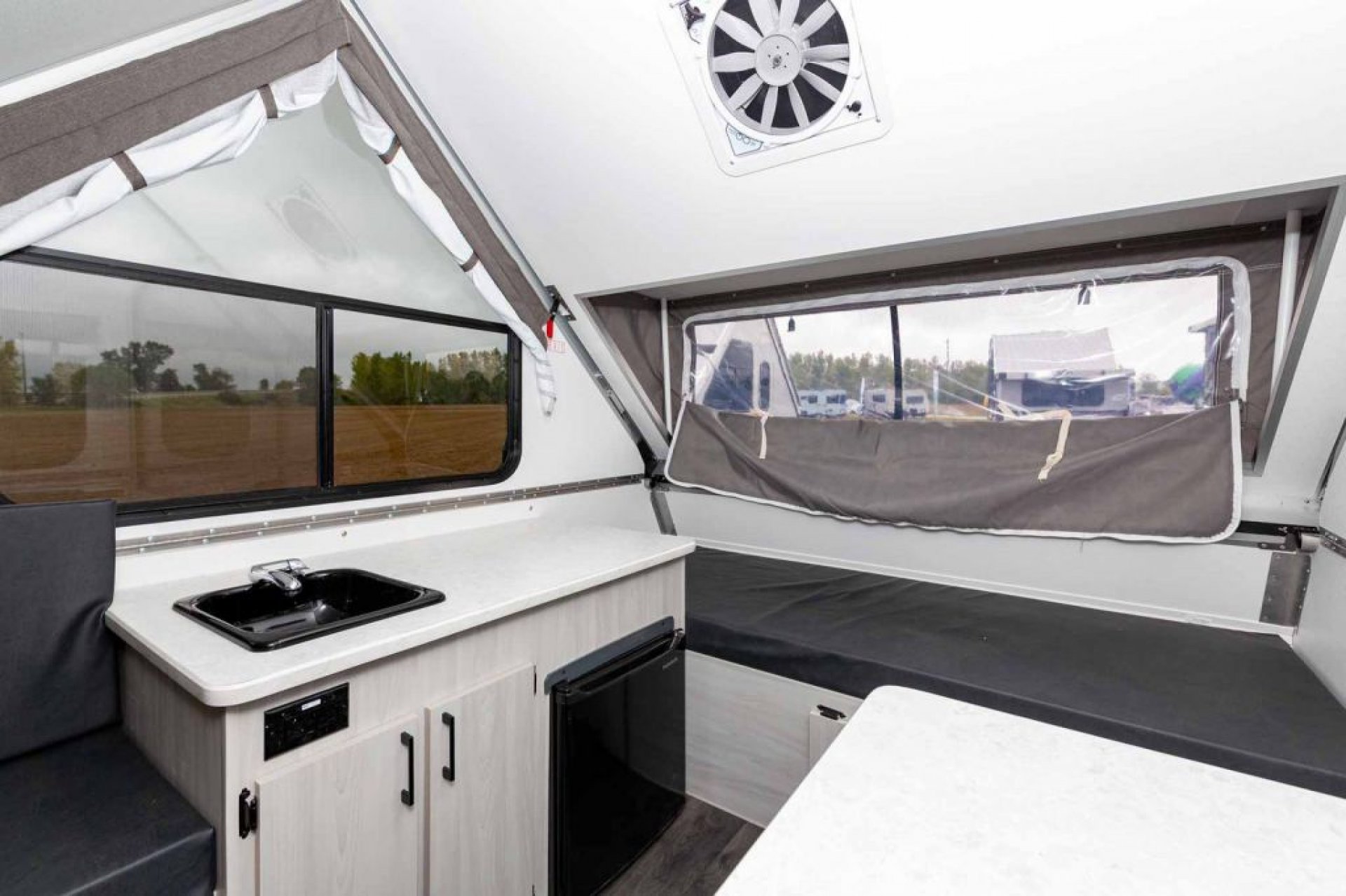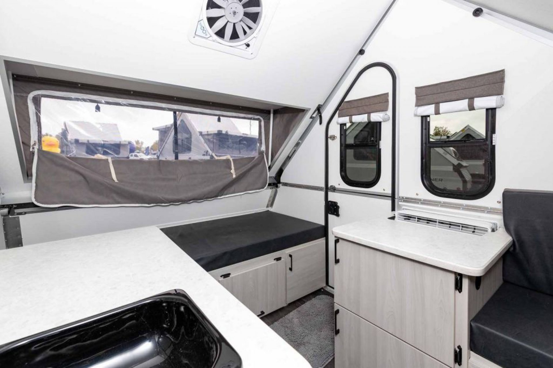 Essentials: Includes 12V/110V outlets, LED lighting, and a Fantastic Fan for airflow.