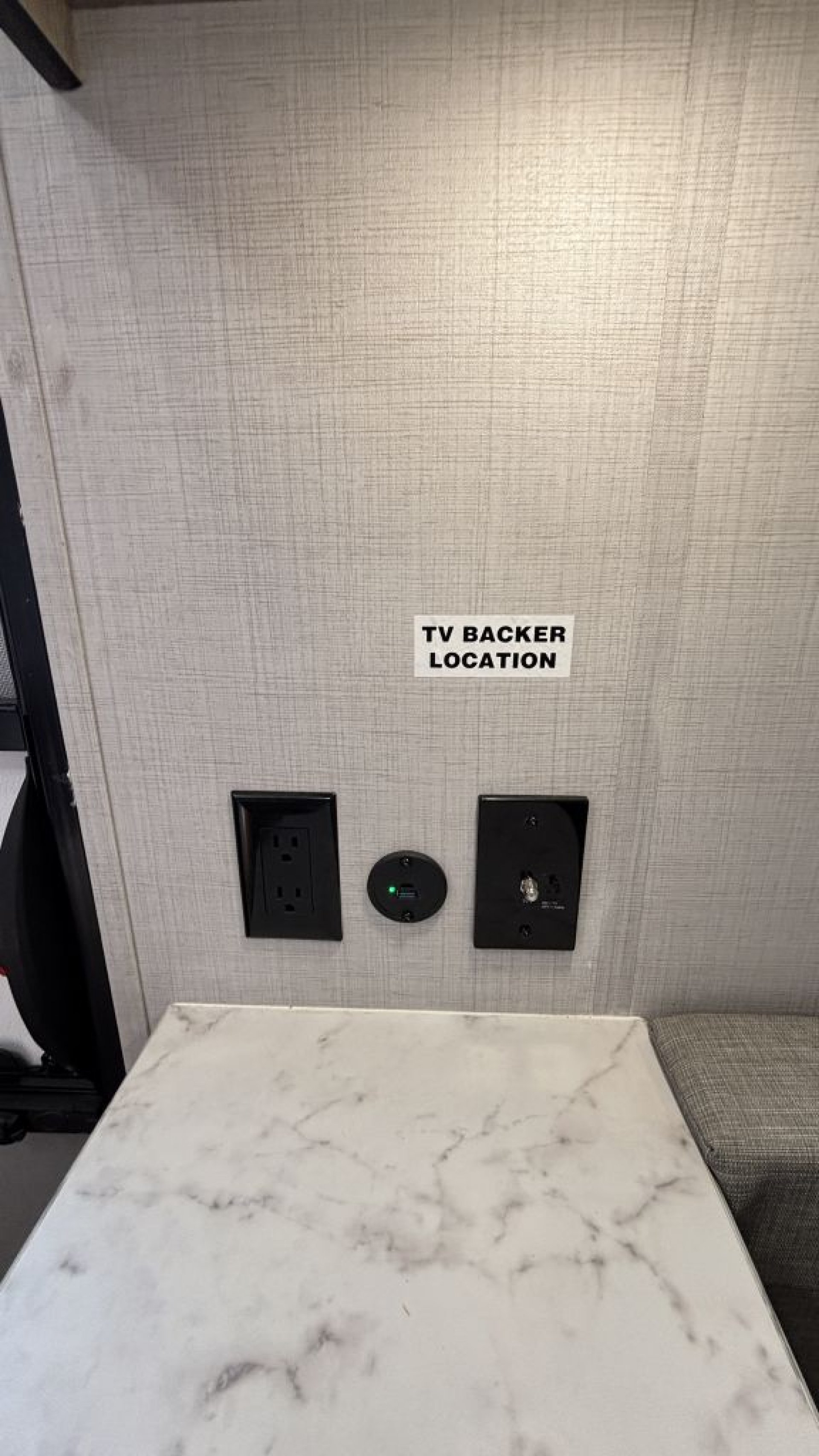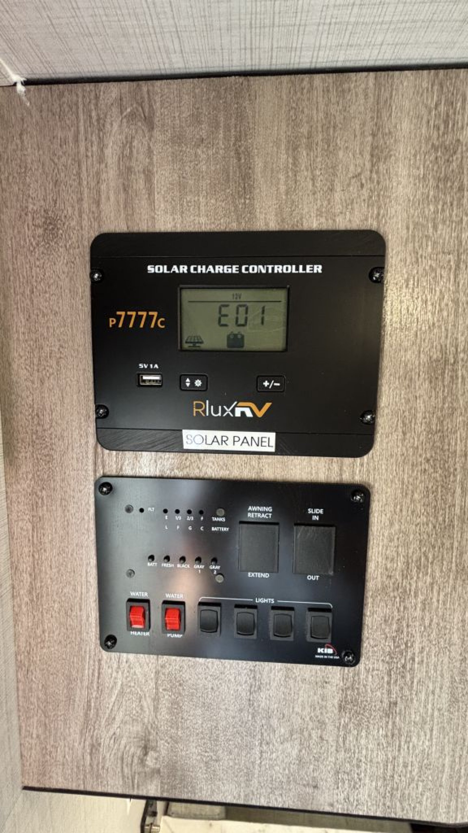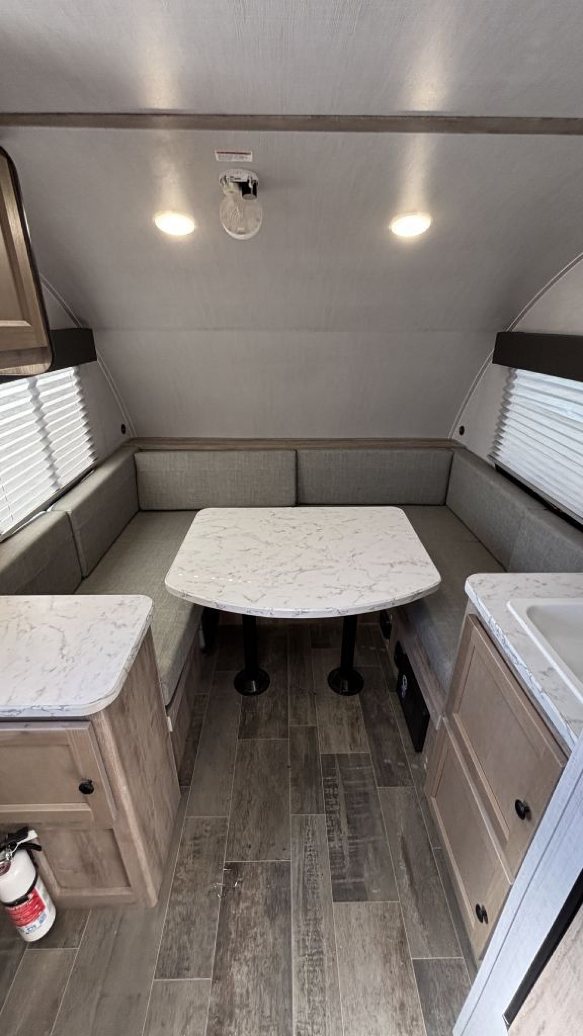 - Single propane tank (4.7 gallons) providing fuel for cooking and heating