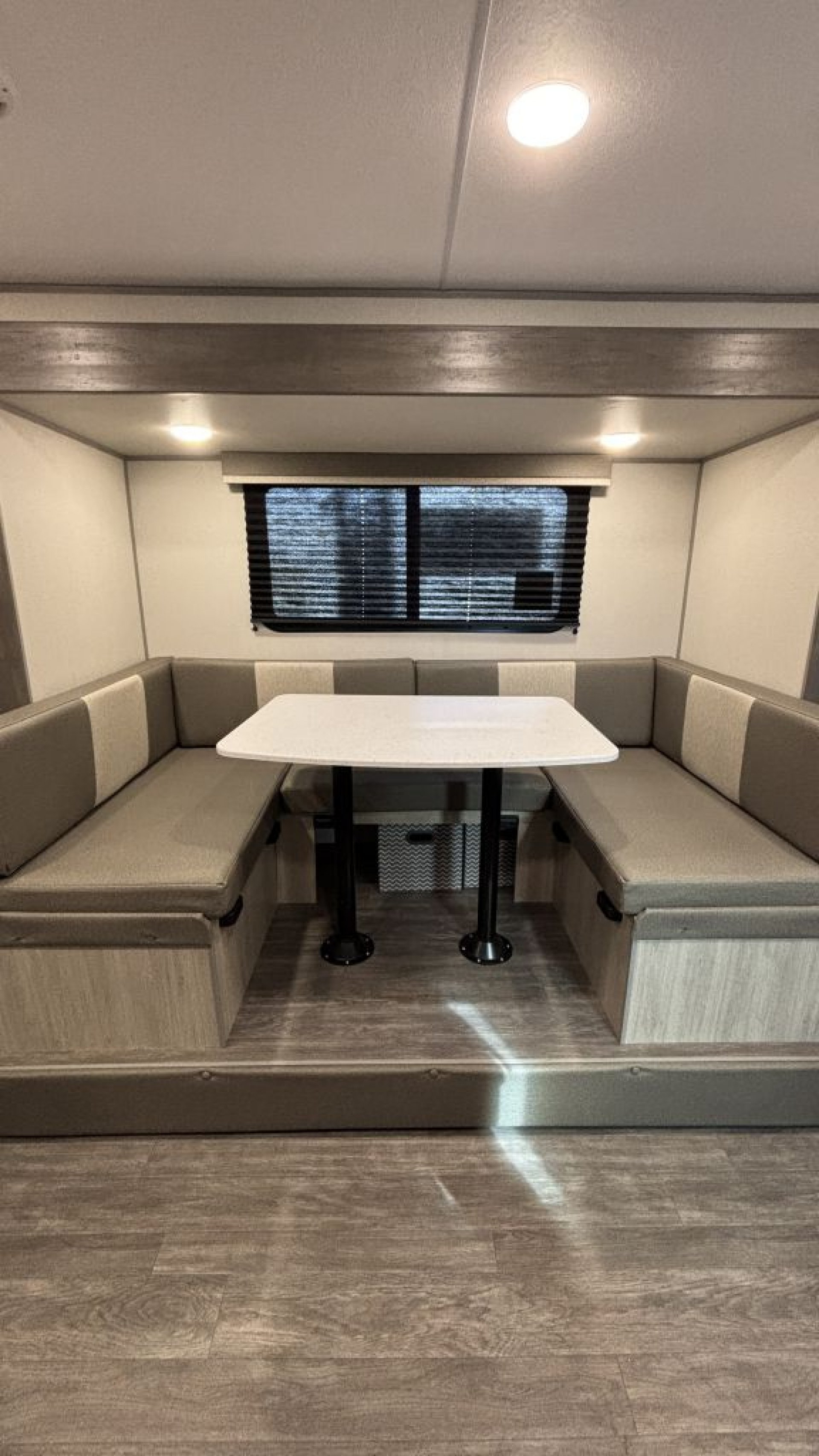 U-Shaped Dinette Slide: A deep slide-out that creates a large "living room" feel and converts into a secondary 44" x 80" bed.