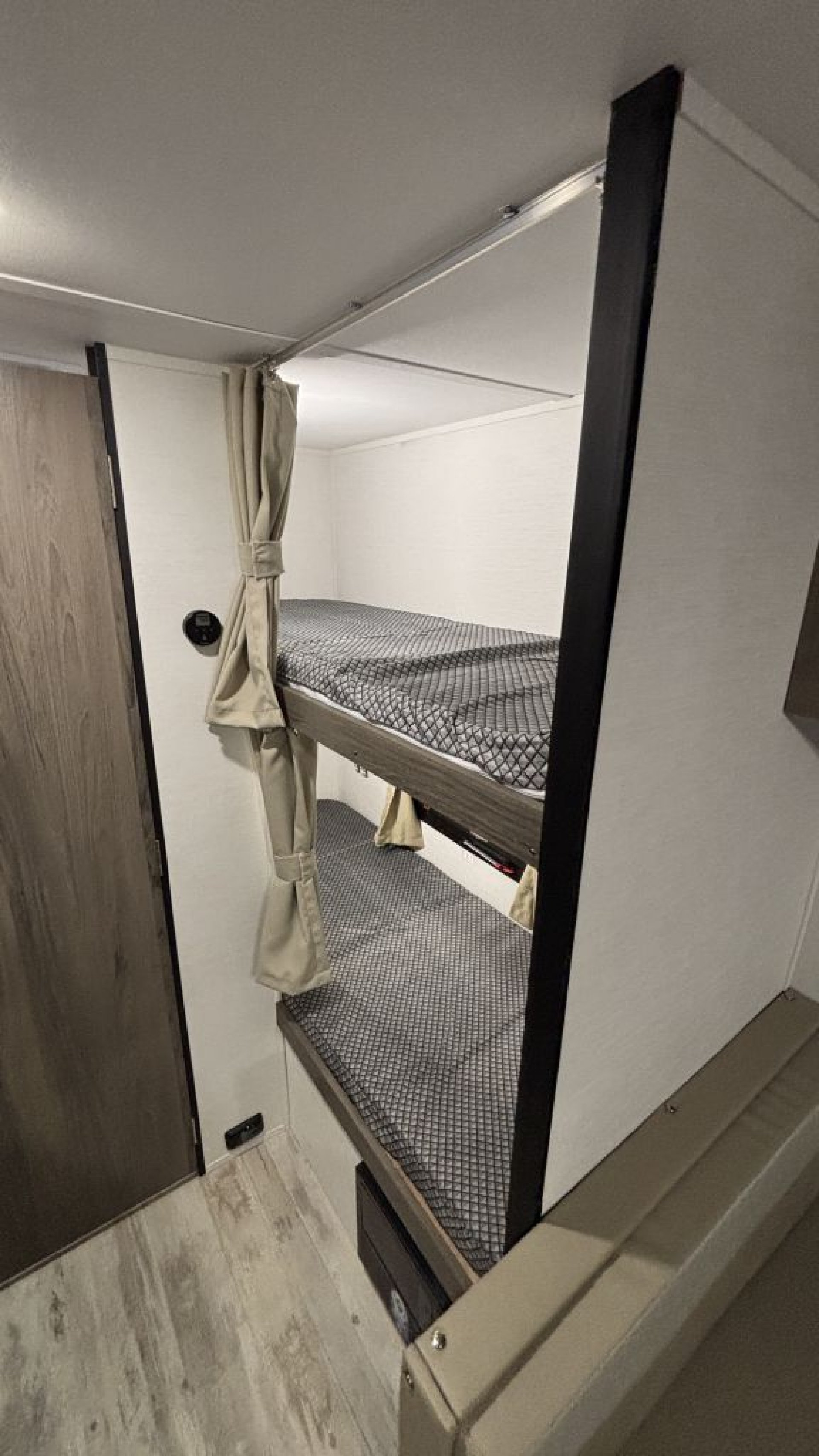 • Bunkhouse Area: Rear bunks (24" x 74" each, double-over-double) with poly mattresses and under-bunk storage for kids.