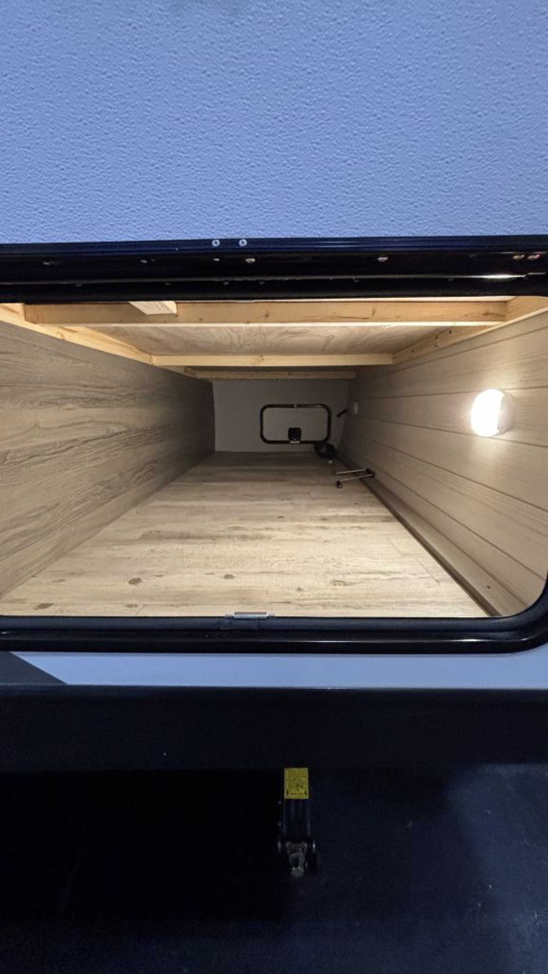- Entry: Side radius door into the living area, with pass-through front storage for gear like fishing poles.