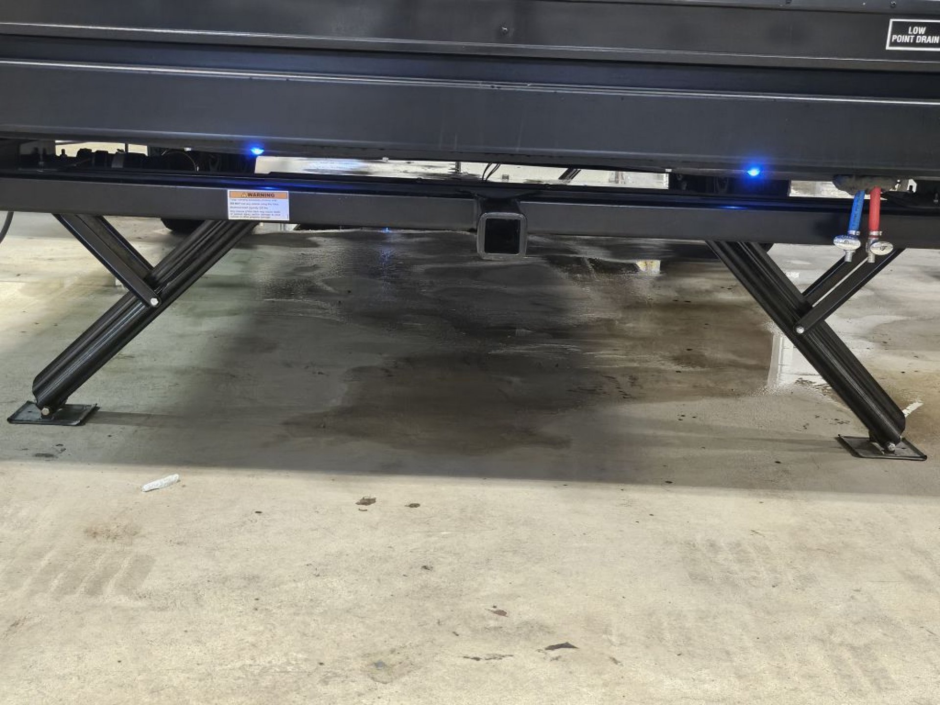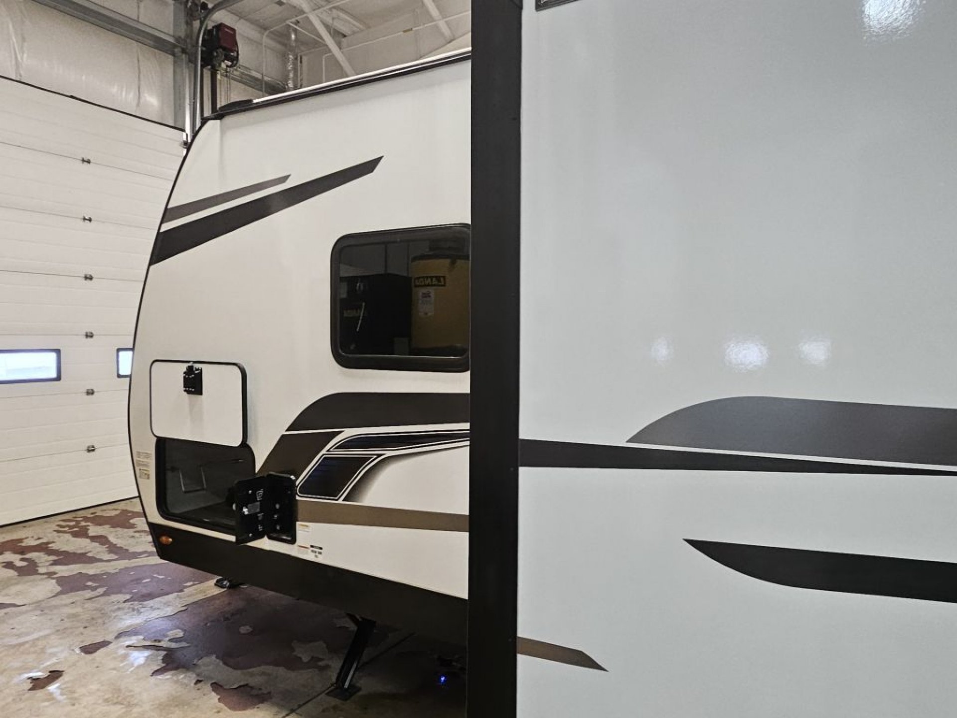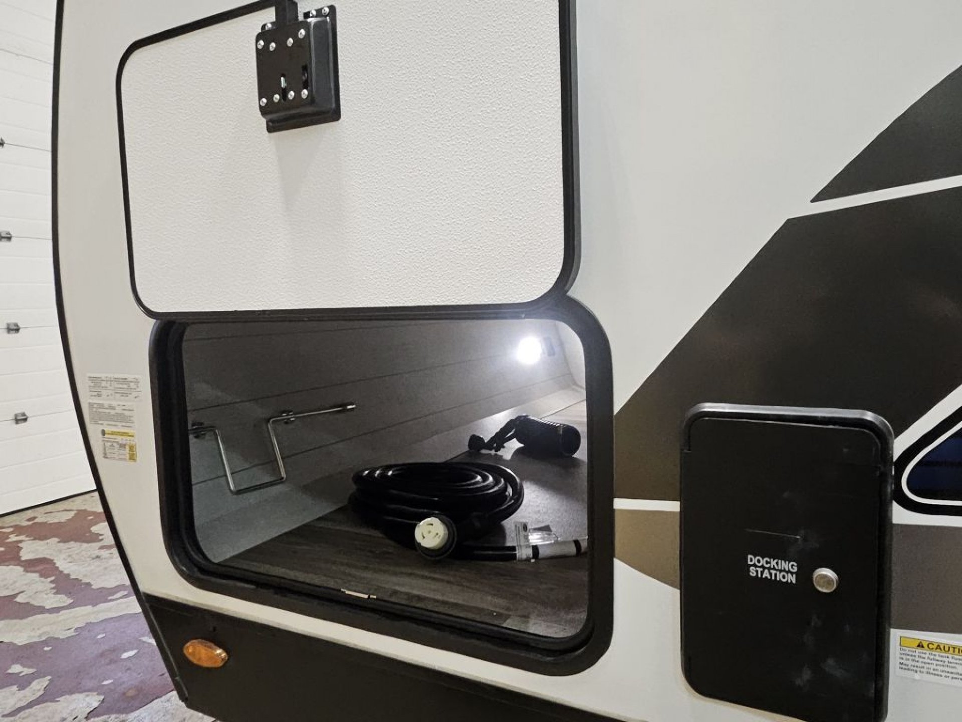 • Convenience: Outside shower, magnetic flush baggage doors, front diamond plate rock guard, 4-point auto leveling, and motion-activated pass-through lights.