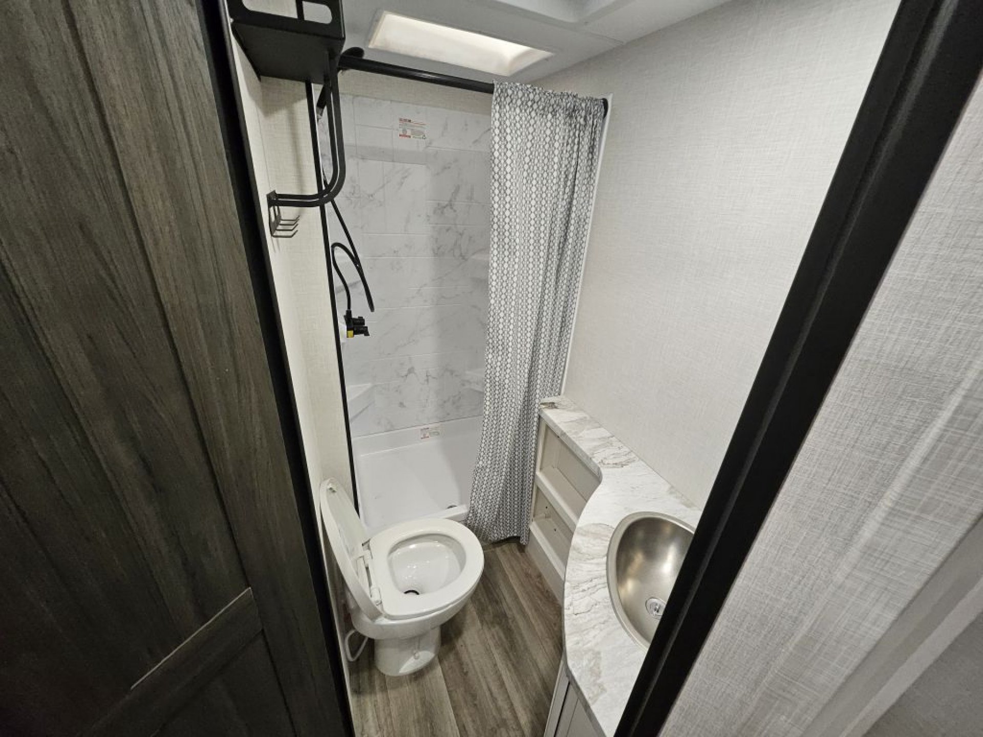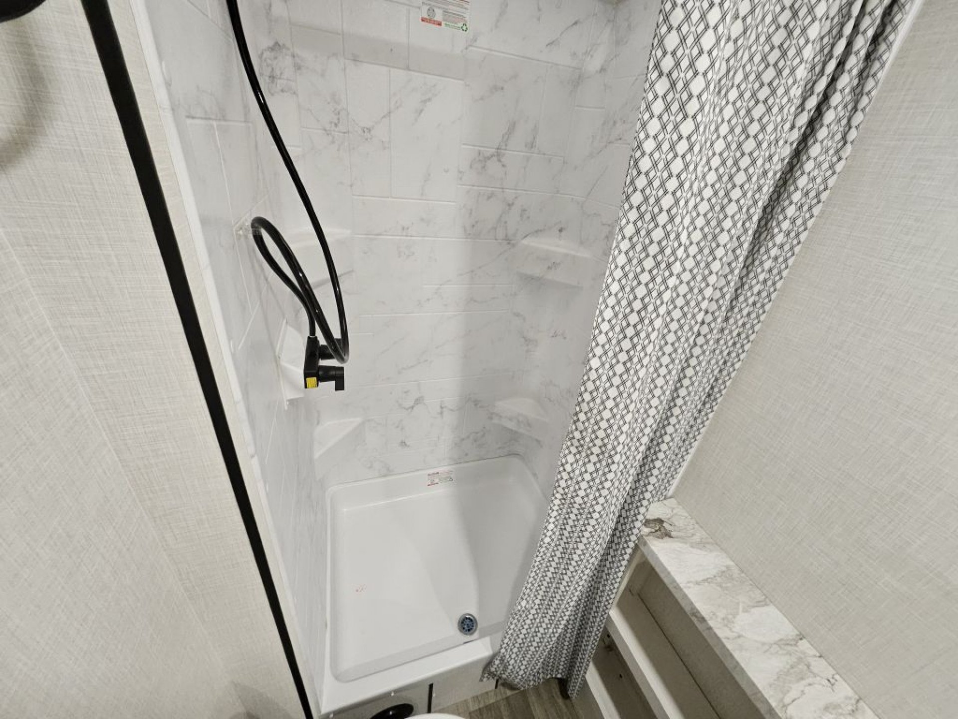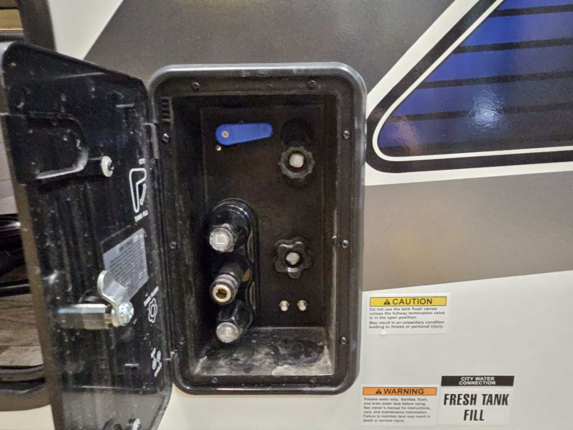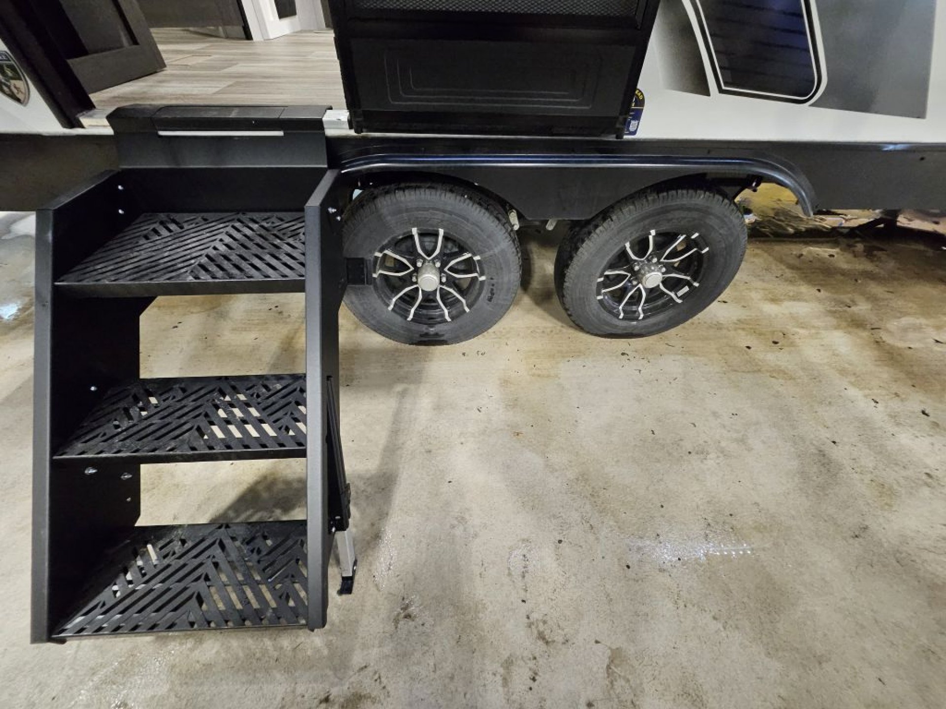 • Convenience: Outside shower, magnetic flush baggage doors, front diamond plate rock guard, 4-point auto leveling, and motion-activated pass-through lights.