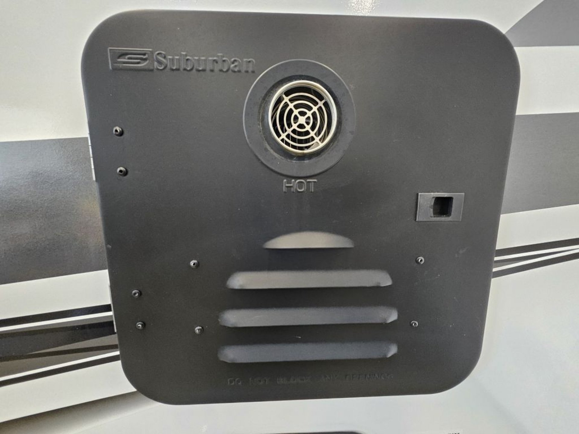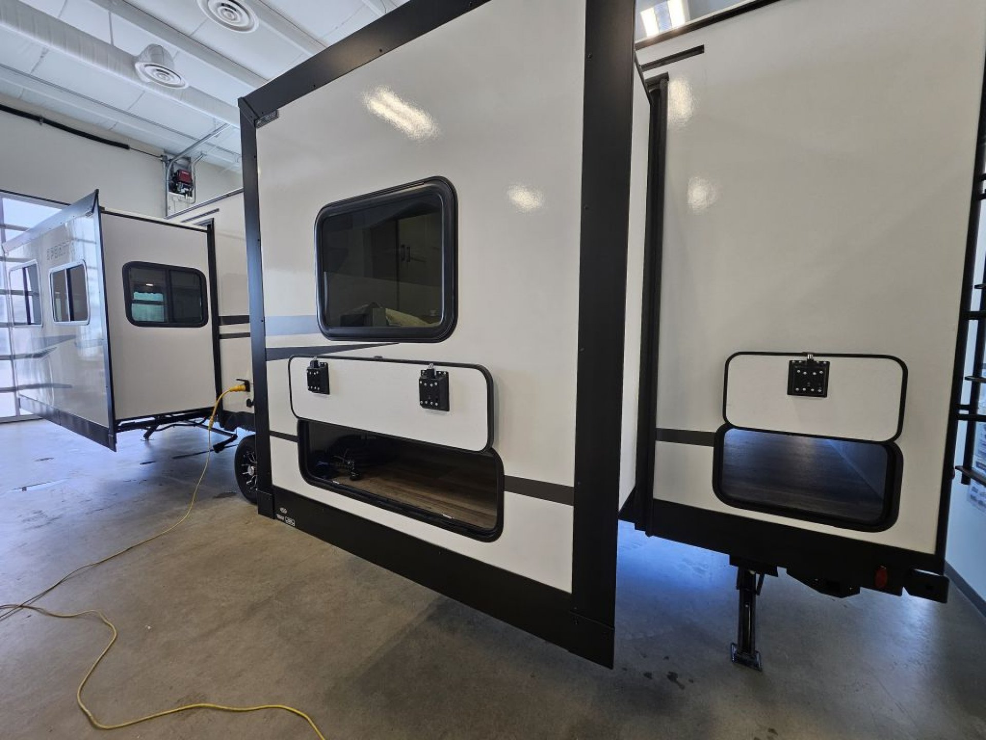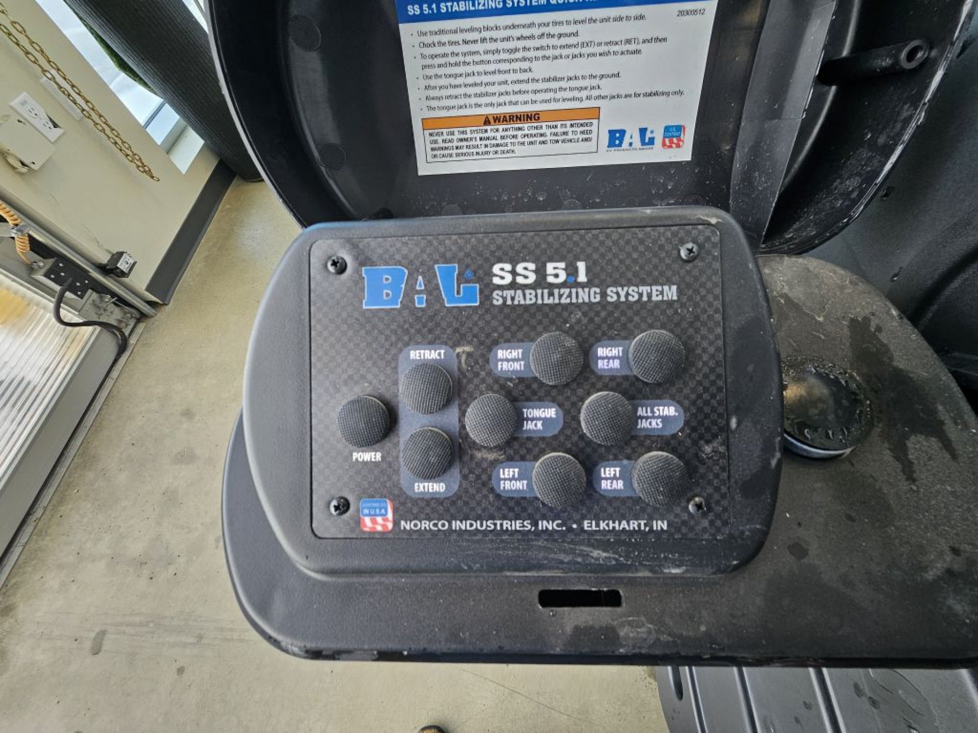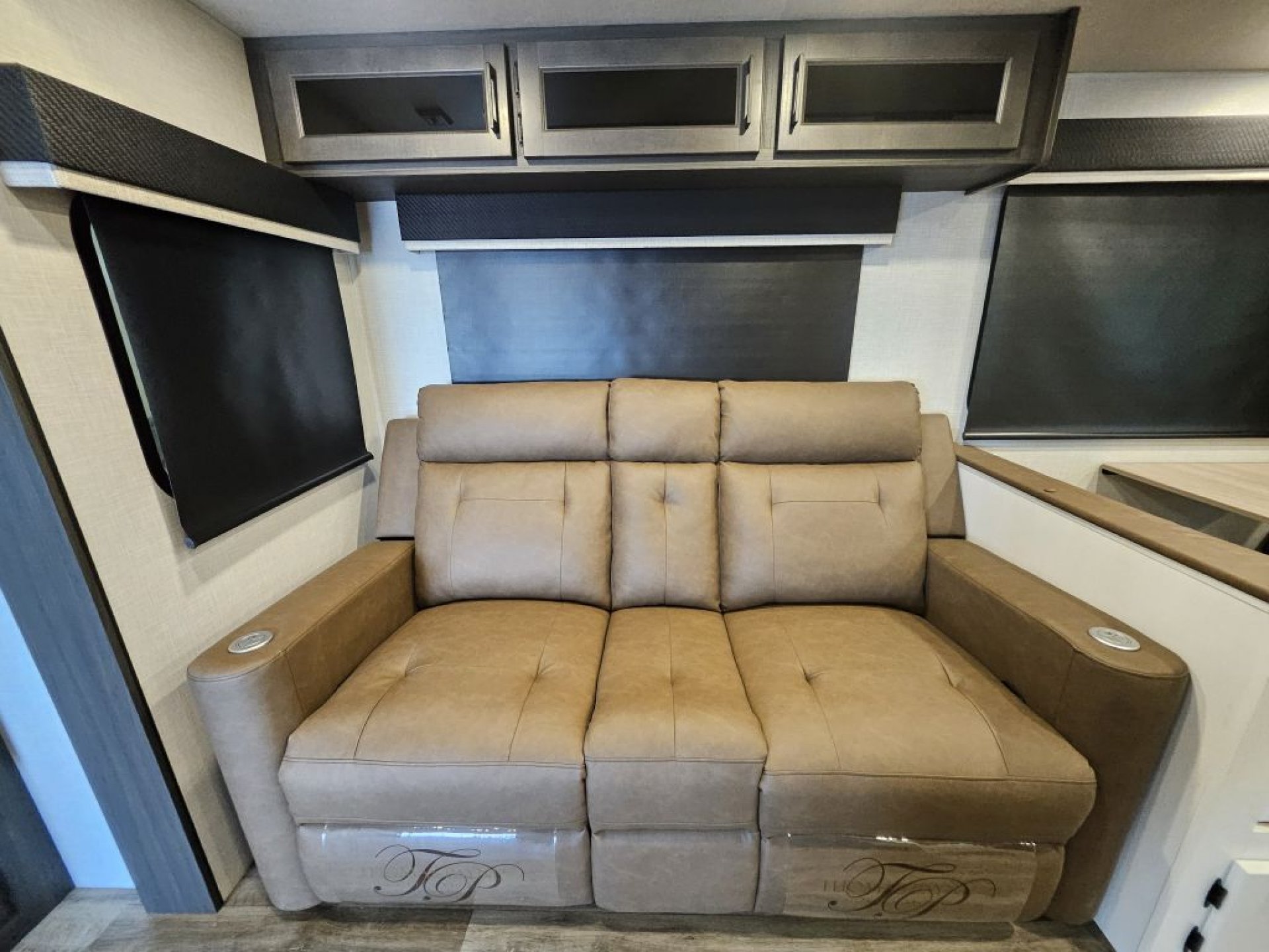 - Kitchen: U-shaped kitchen with residential appliances, residential cabinets and drawers, adjustable pantry, large 12 volt refrigerator, 3 burner cook top with air fryer capable oven, microwave, wine rack and an XL counter for your meal prep.