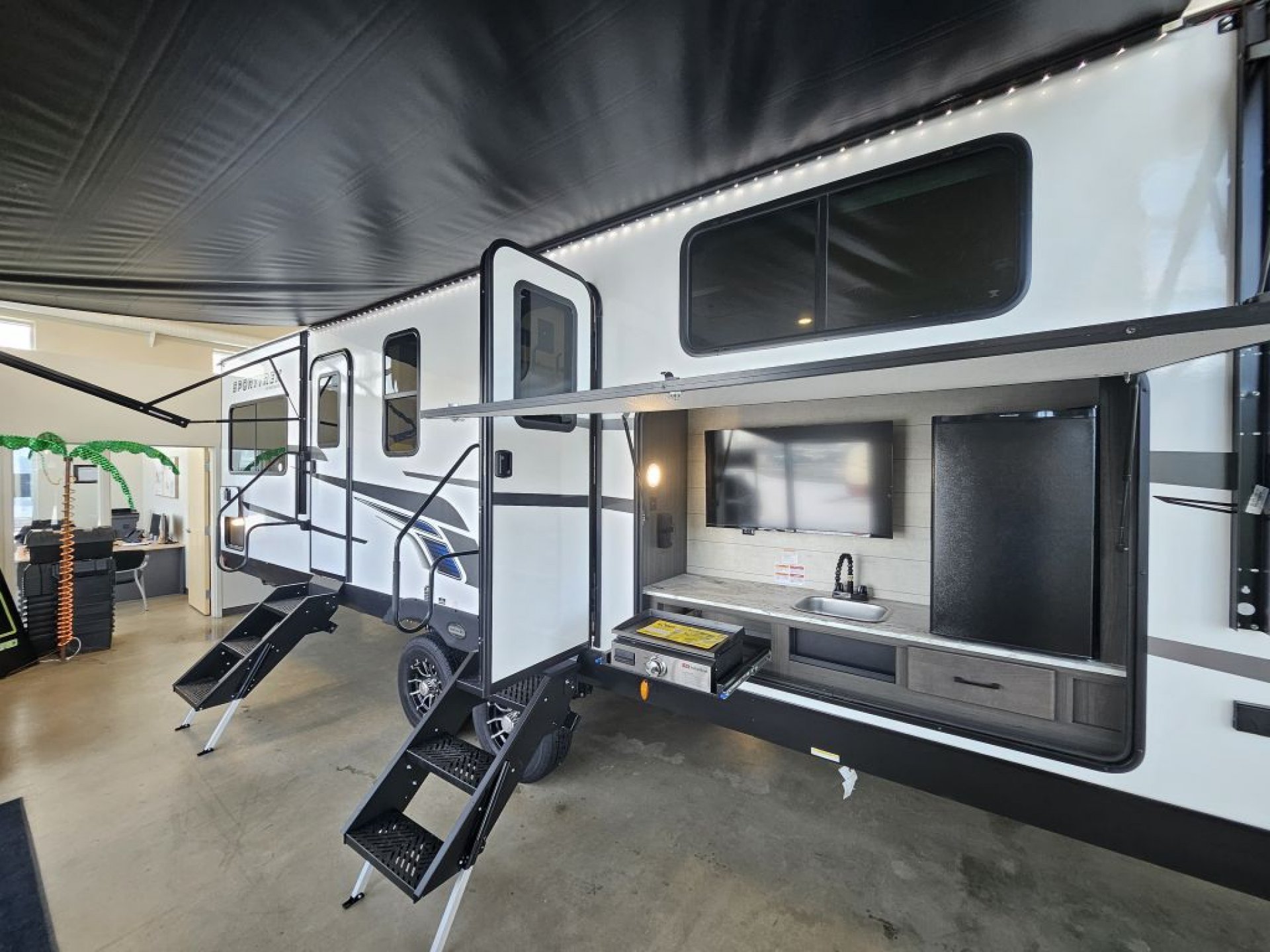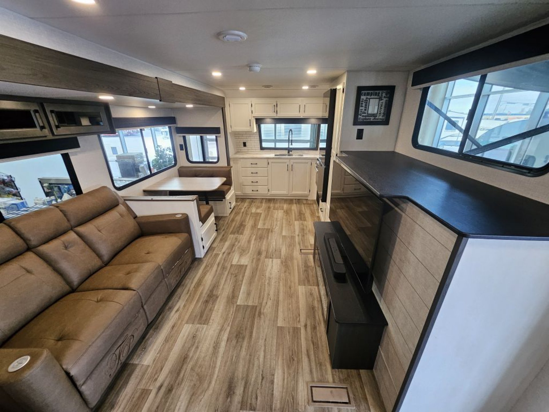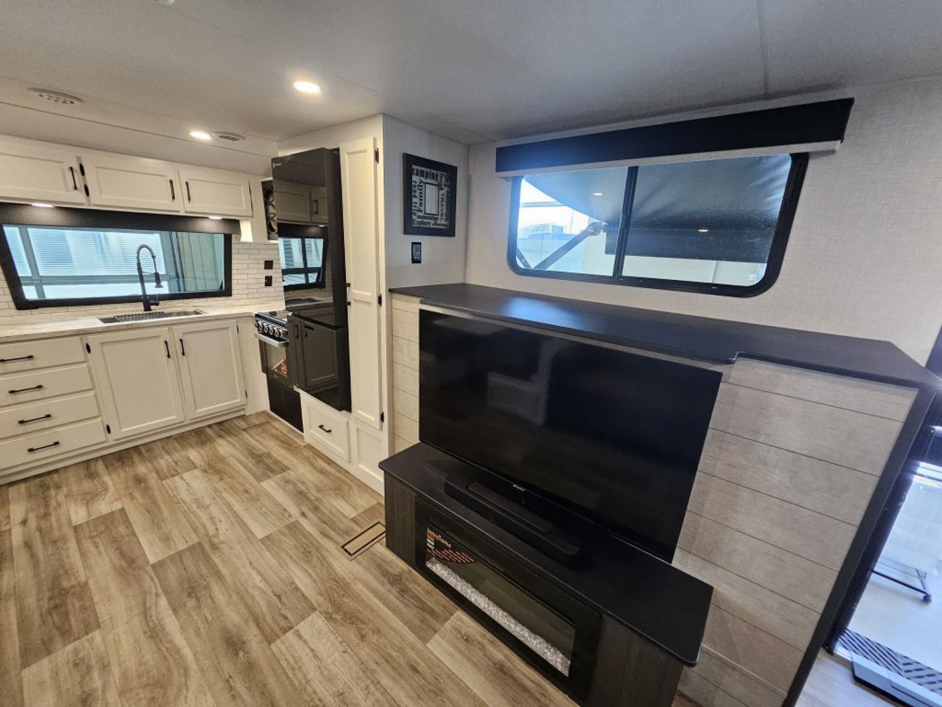 The 302VFK's front kitchen design creates a seamless, open-concept flow with dedicated zones for cooking, relaxing, and sleeping: