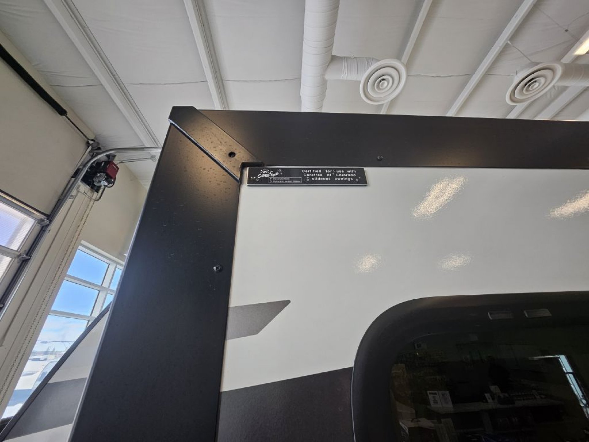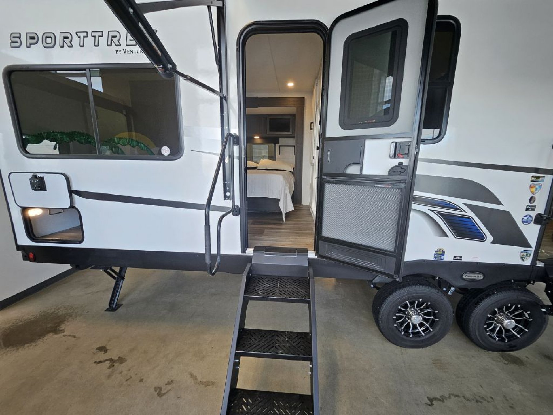 This layout expands to over 400 sq ft of living space when slides are deployed, promoting a home-like atmosphere with 84" interior height.