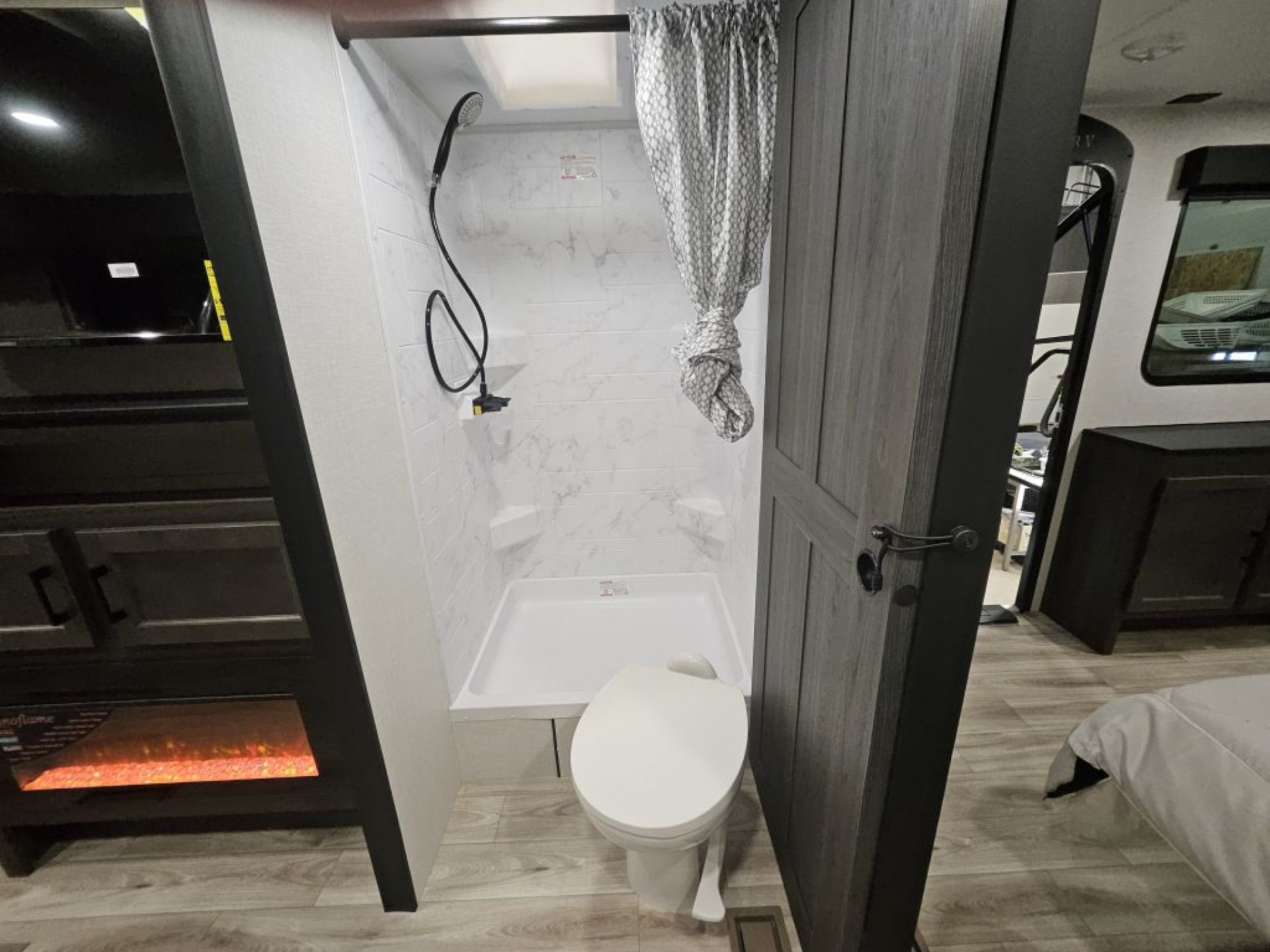 Tank Capacities: Fresh water 45 gal, Grey water 64 gal, Black water 32 gal — ideal for longer stays with less hassle.
