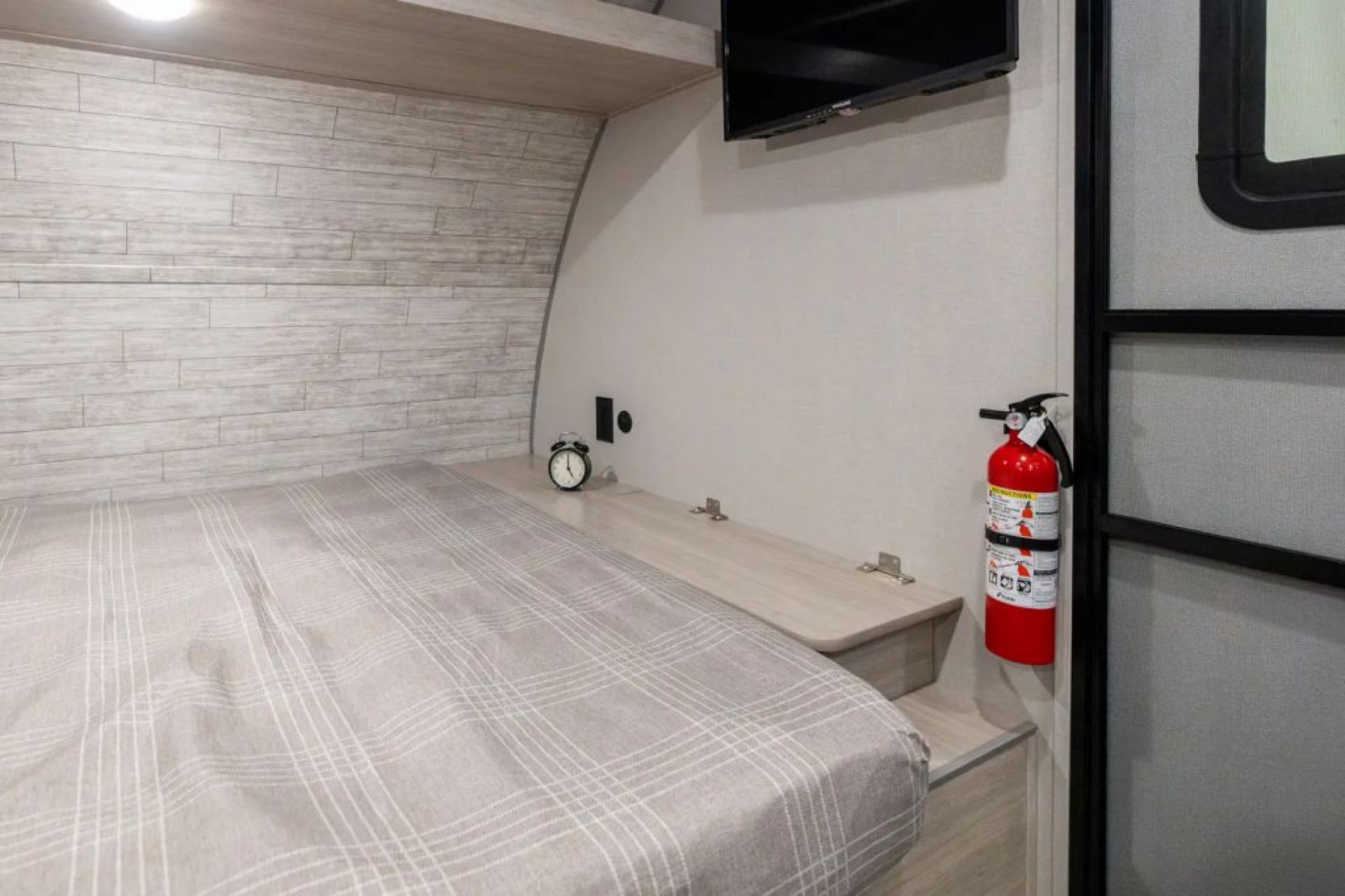 Built with a seamless roofing membrane, fully e-coated frame, powder-coated chassis, and nitrogen-filled tires, it emphasizes durability and ease of maintenance in an affordable, entry-level package suited for weekend trips or first-time RVers.