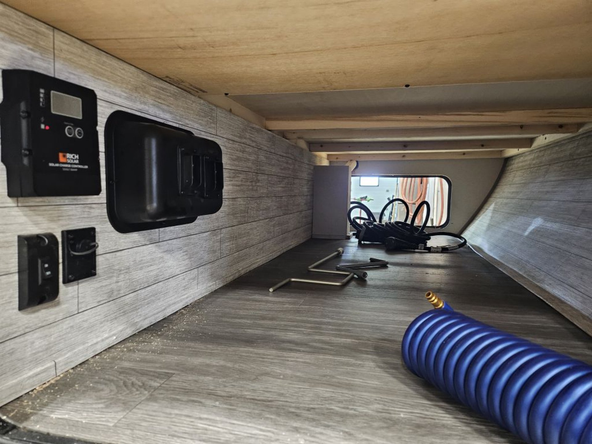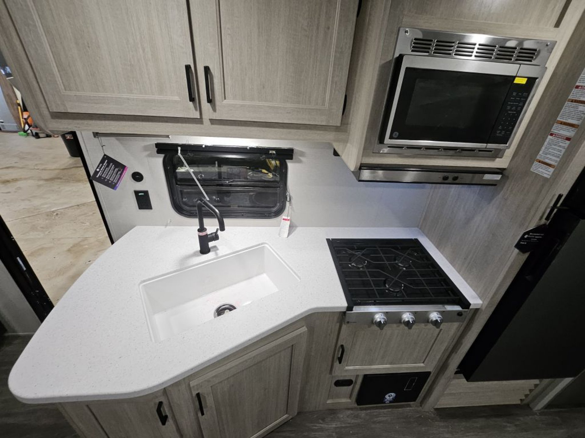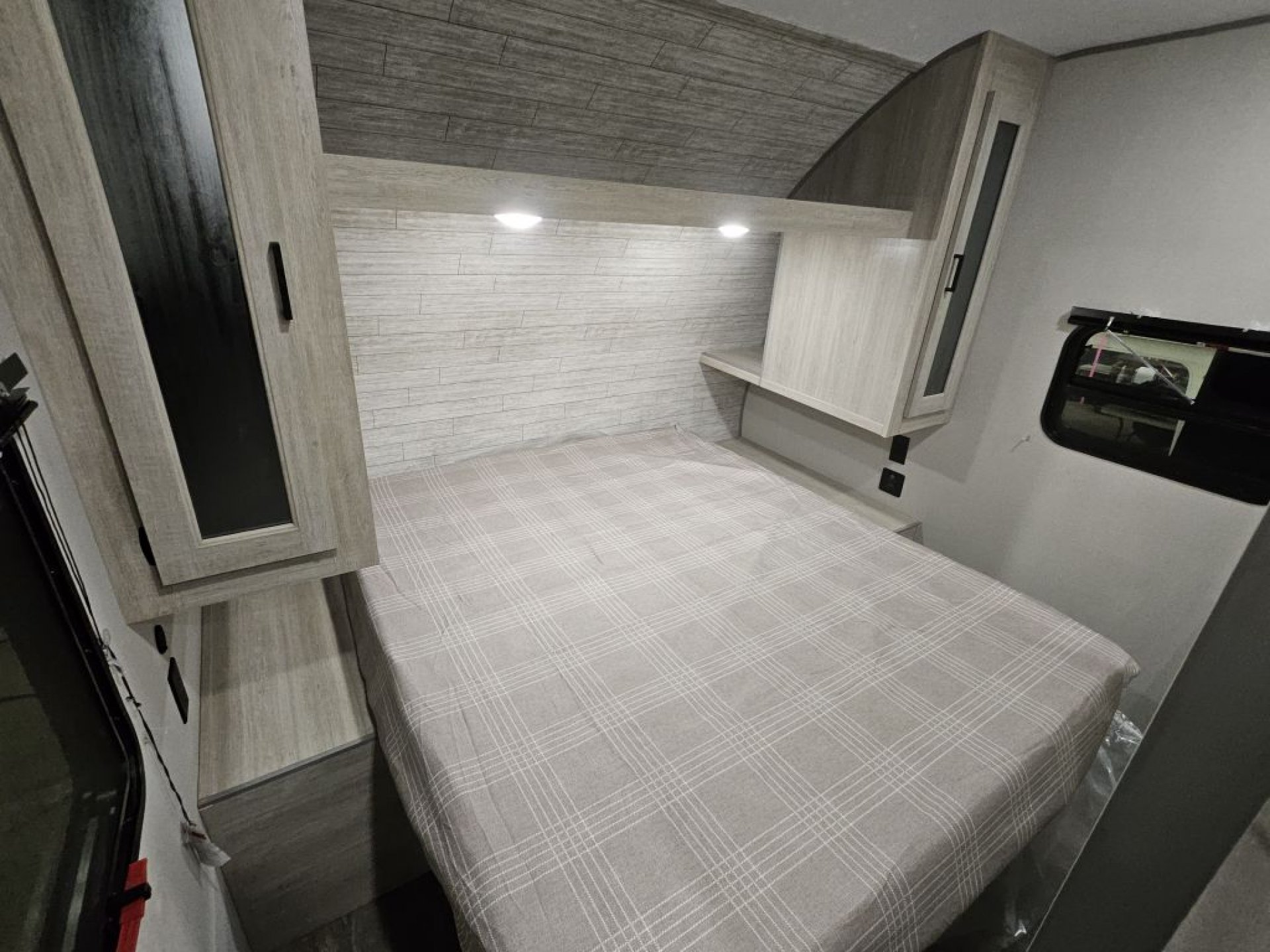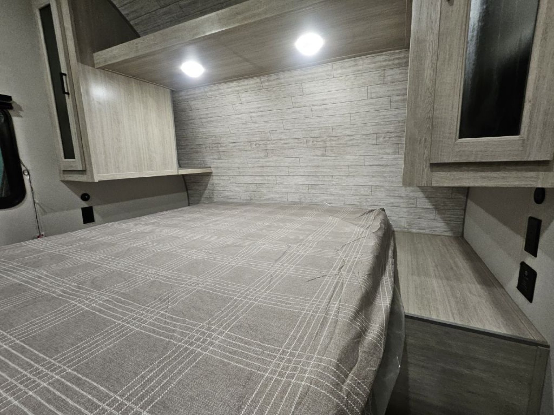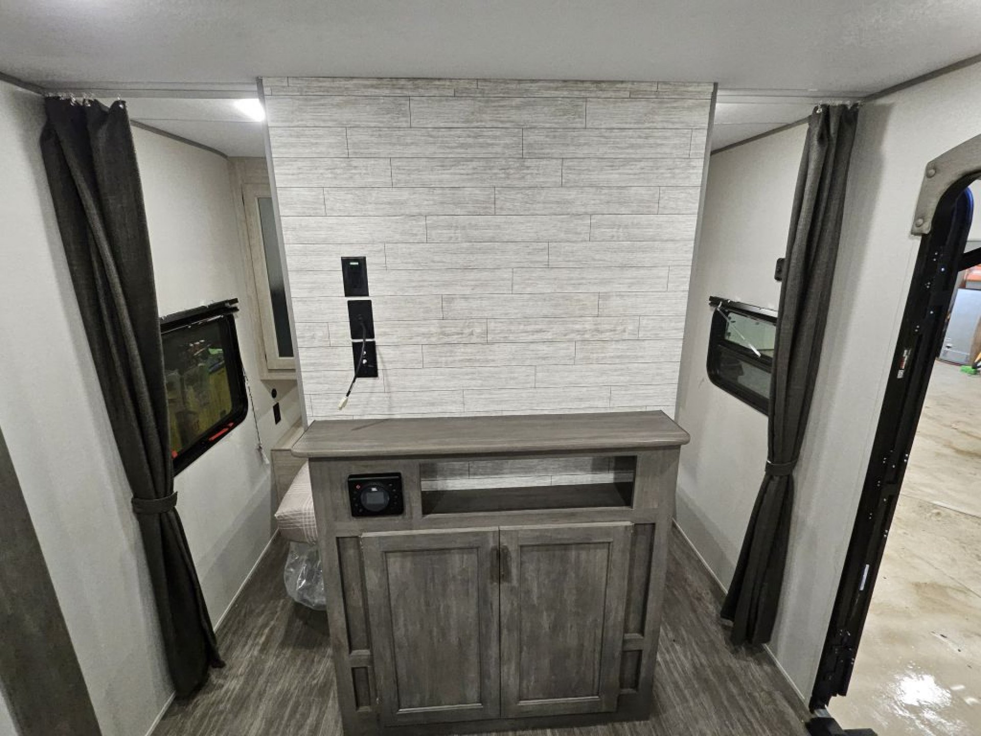 15,000 BTU Ducted AC: This unit features a high-output cooling system that is ducted throughout the ceiling to ensure the rear bunks and front bedroom stay as cold as the living room.