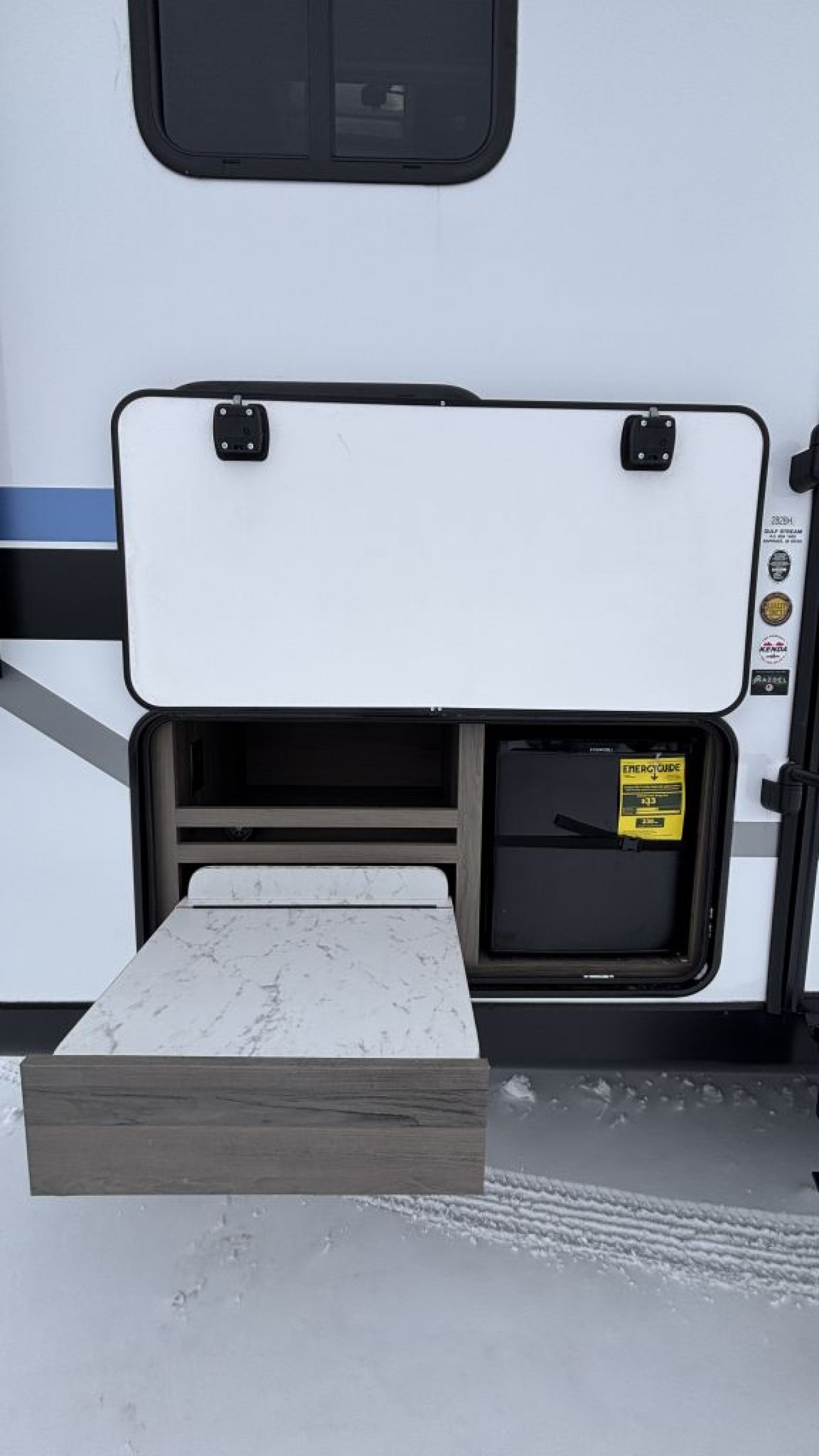 The 282BH's bunkhouse design balances family zones with efficient flow, featuring dual entry doors and a slide-out that expands the interior: