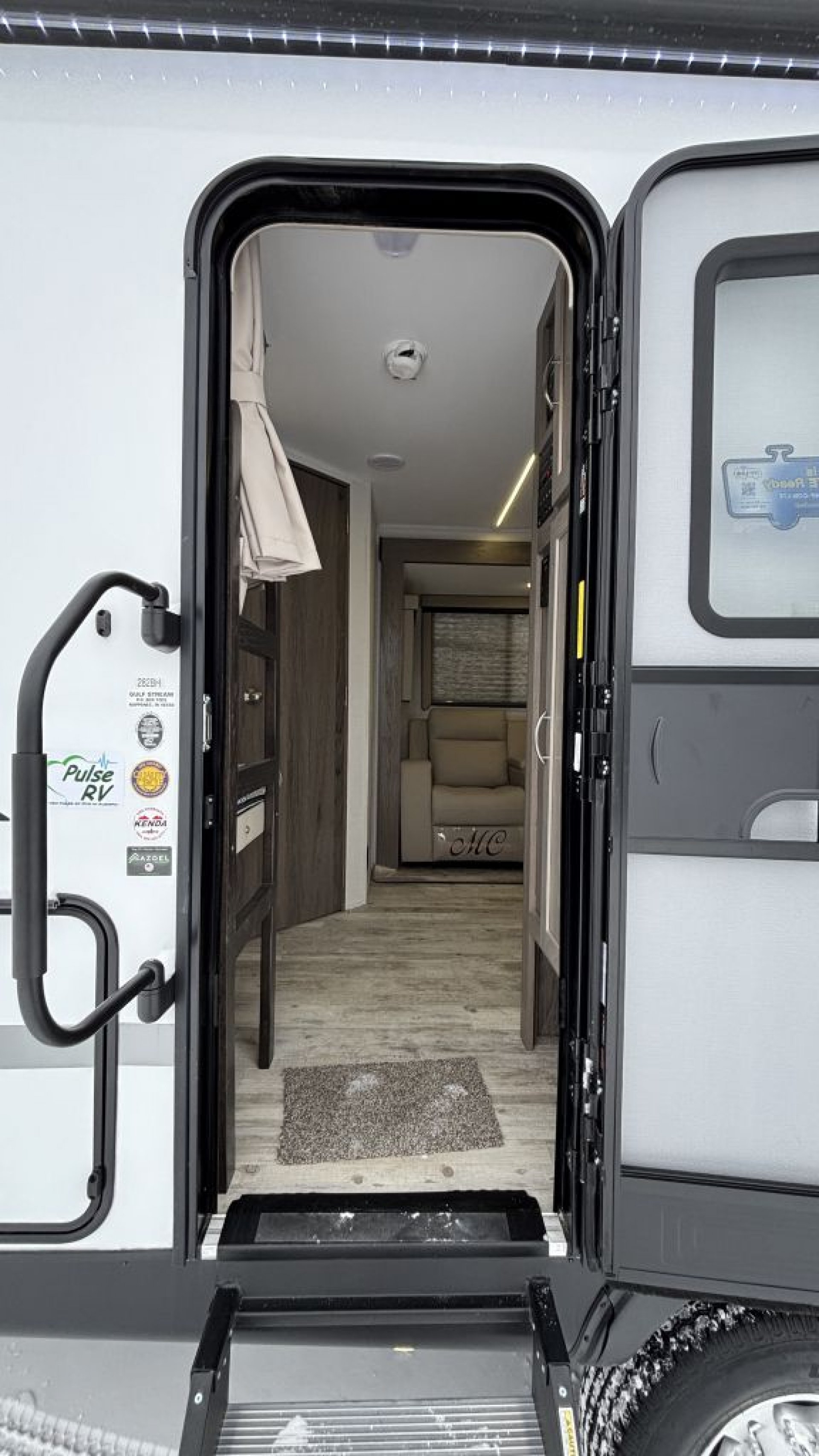 • Entry: Side door to living area and rear door to bunkhouse, with pass-through storage featuring shore station hookups.