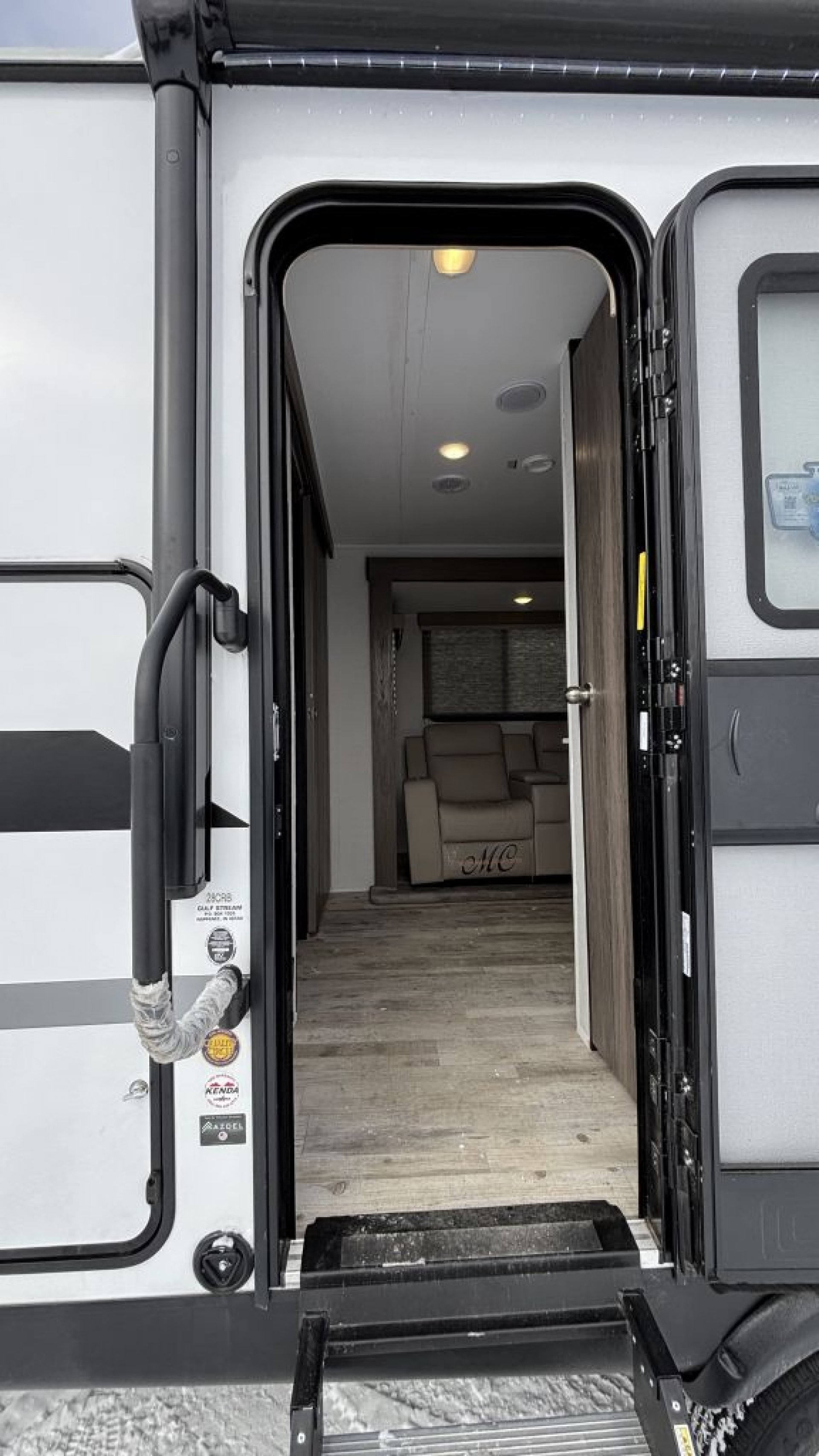- Entry: Radius entry door to the living area, with front pass-through storage.