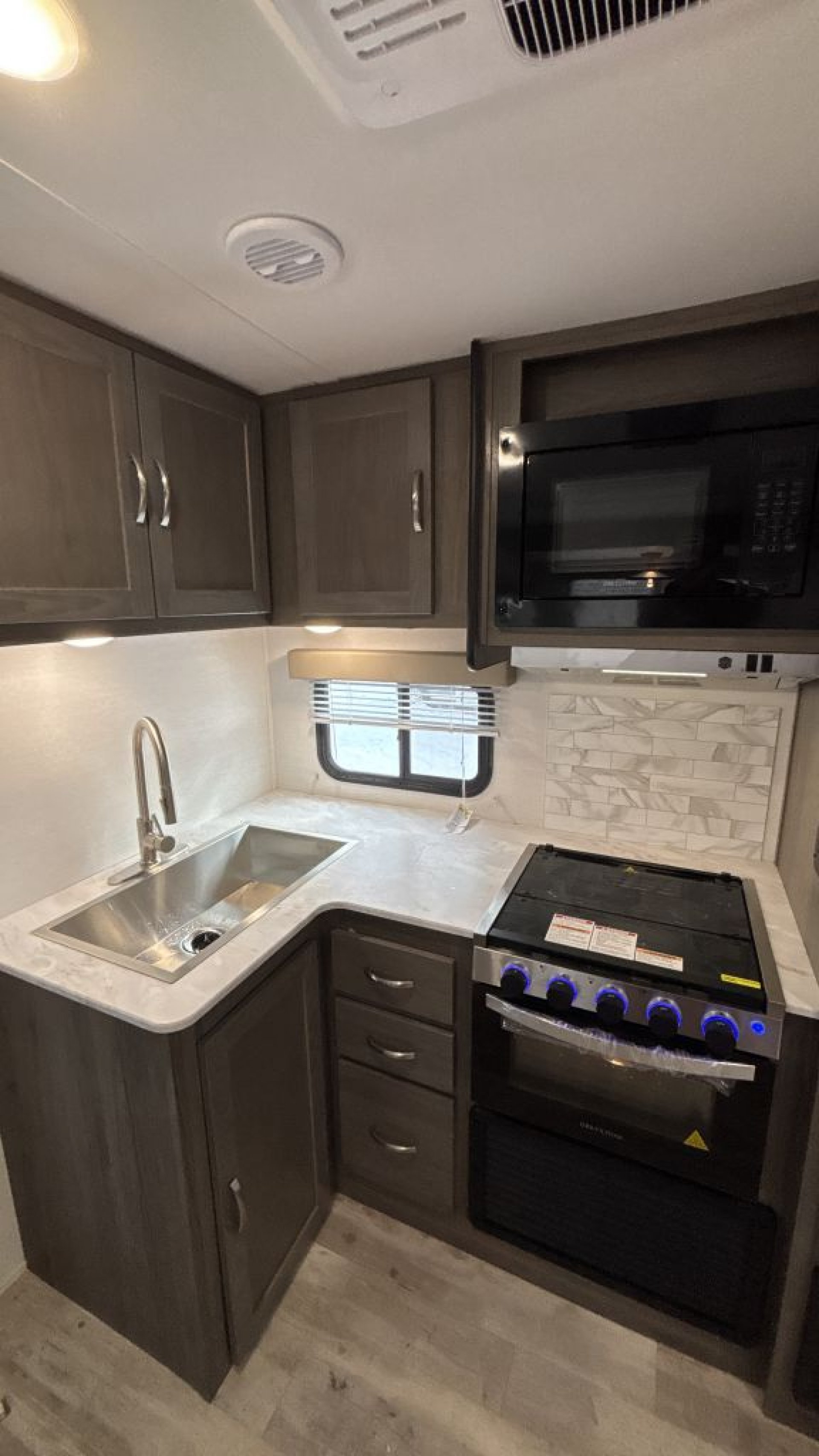 - Climate Control: 13.5K BTU ducted A/C and 30K BTU furnace for year-round comfort; 6-gallon gas/electric water heater.