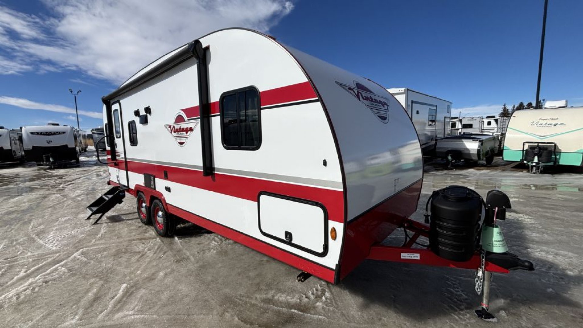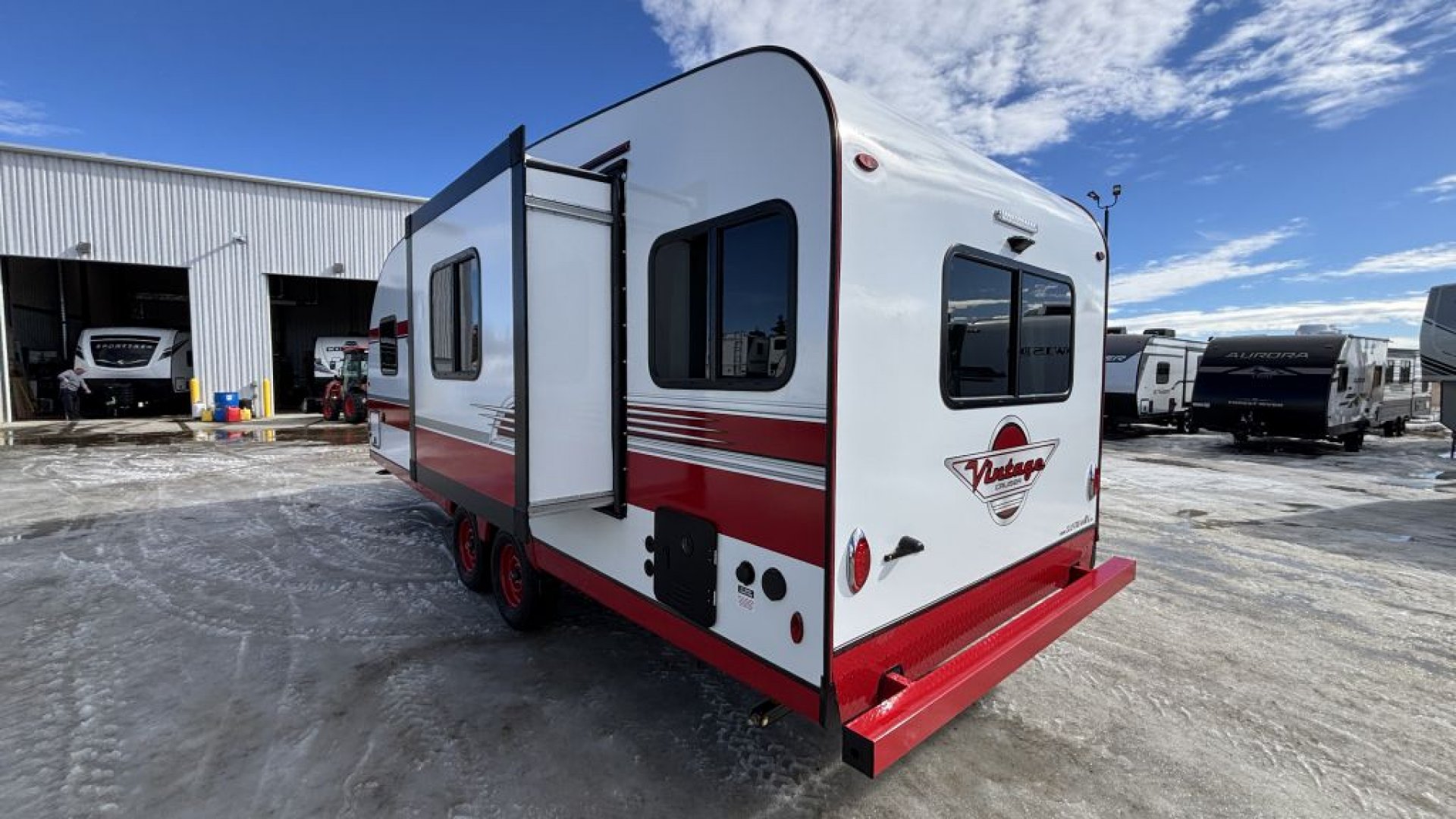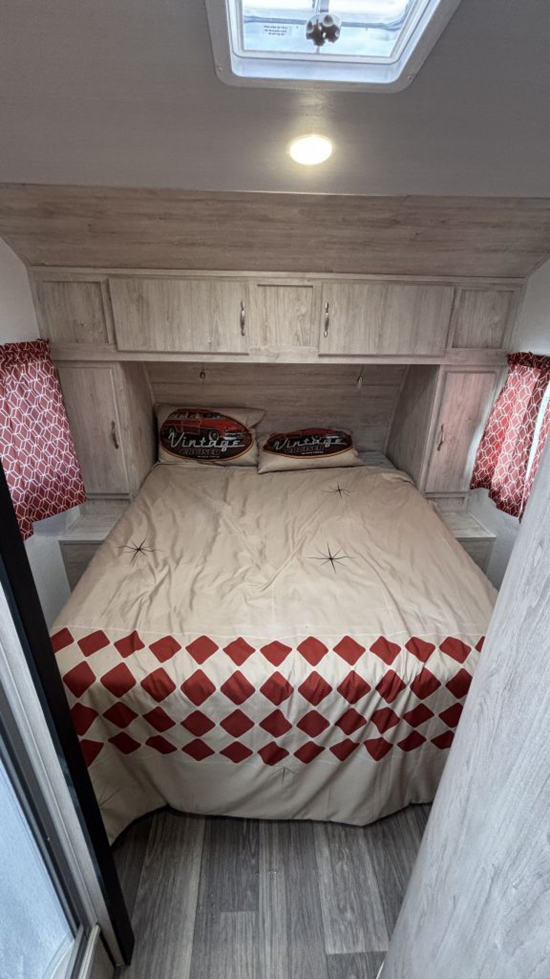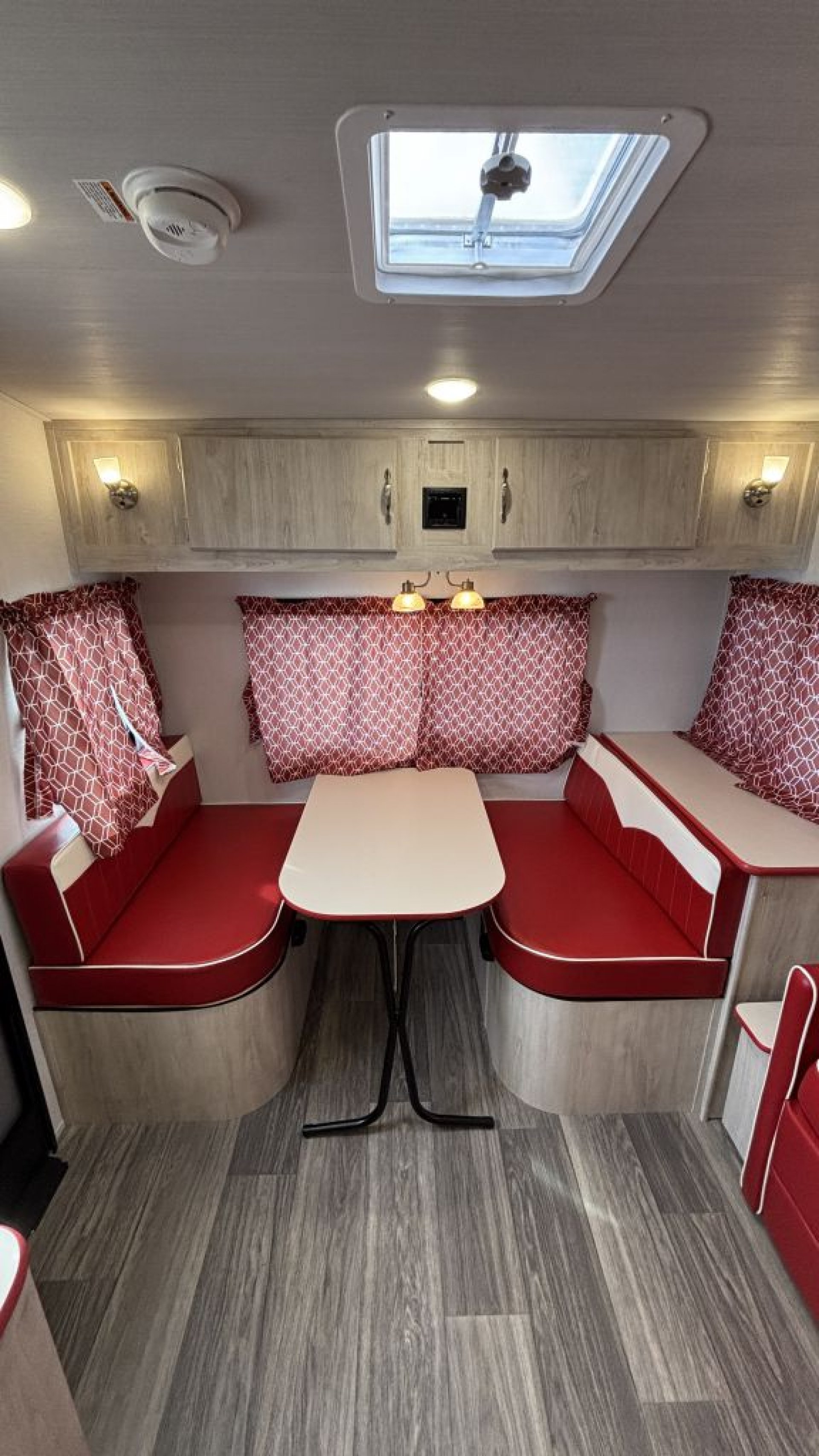 This layout expands to over 280 sq ft when the slide is out, with large windows enhancing the vintage vibe.