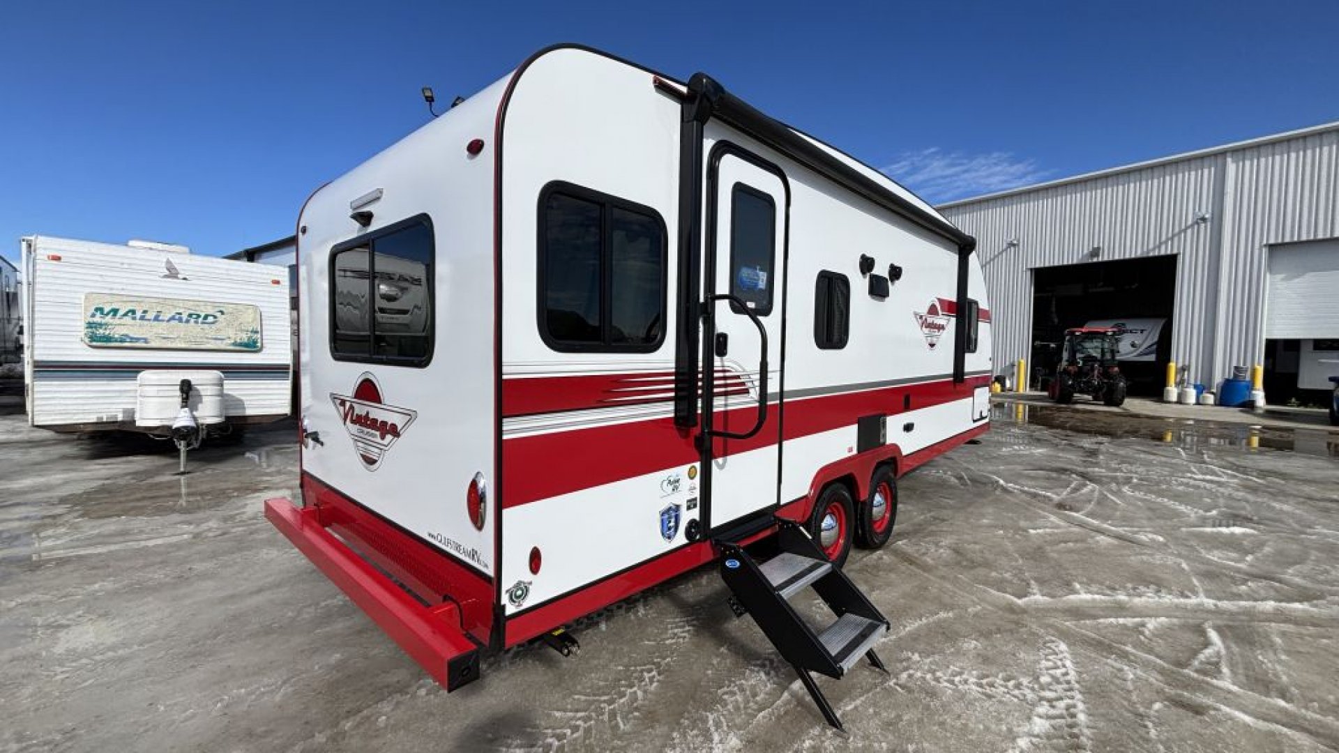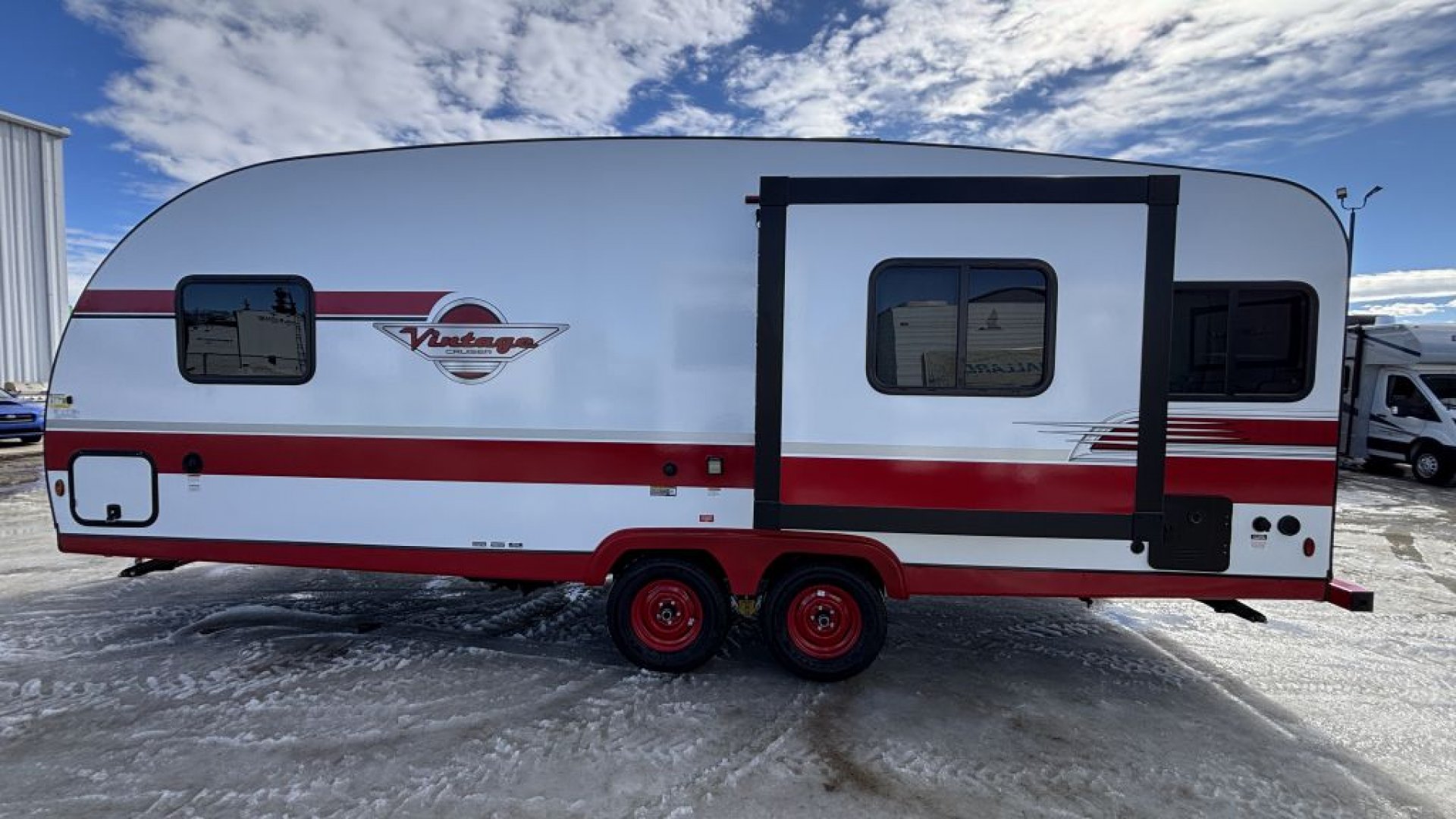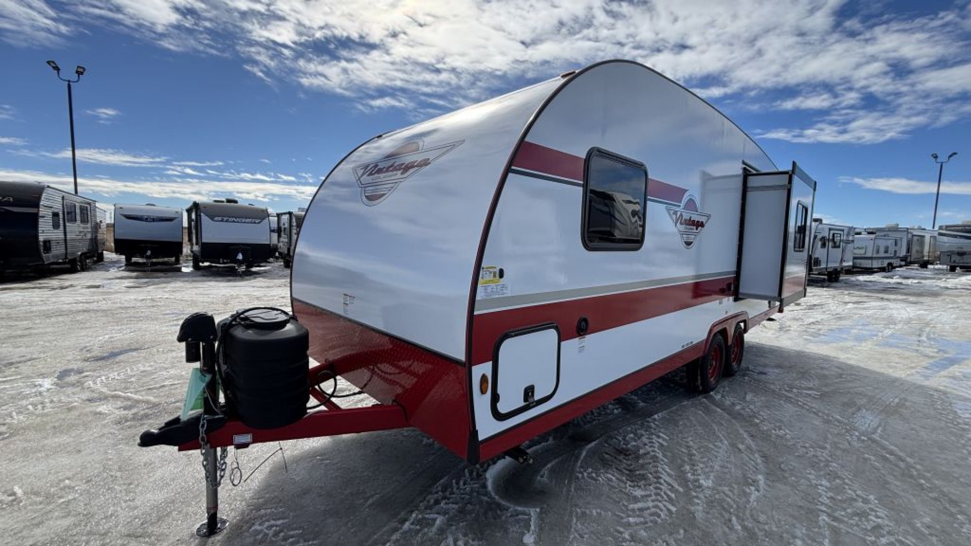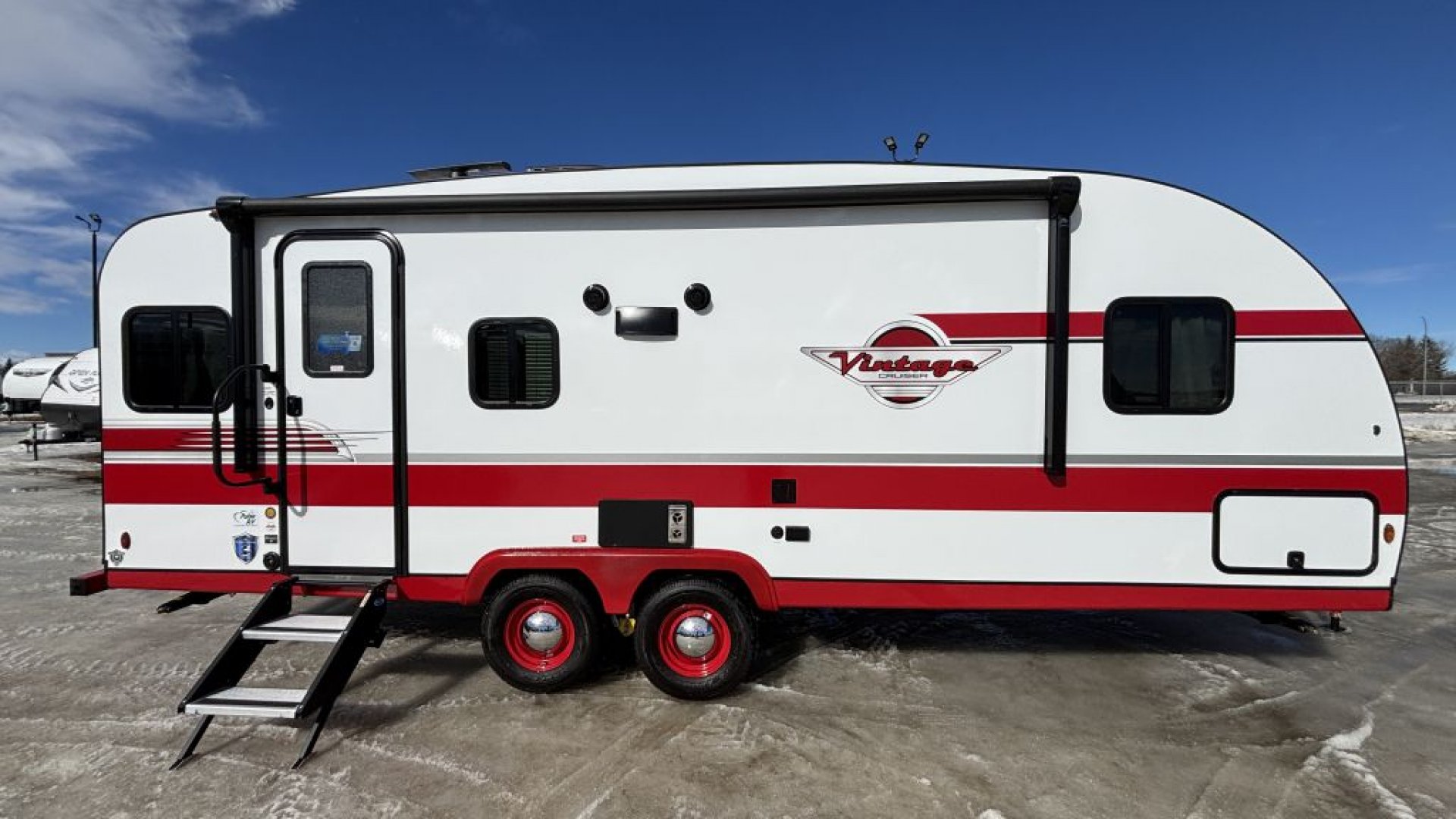 This layout expands to over 280 sq ft when the slide is out, with large windows enhancing the vintage vibe.