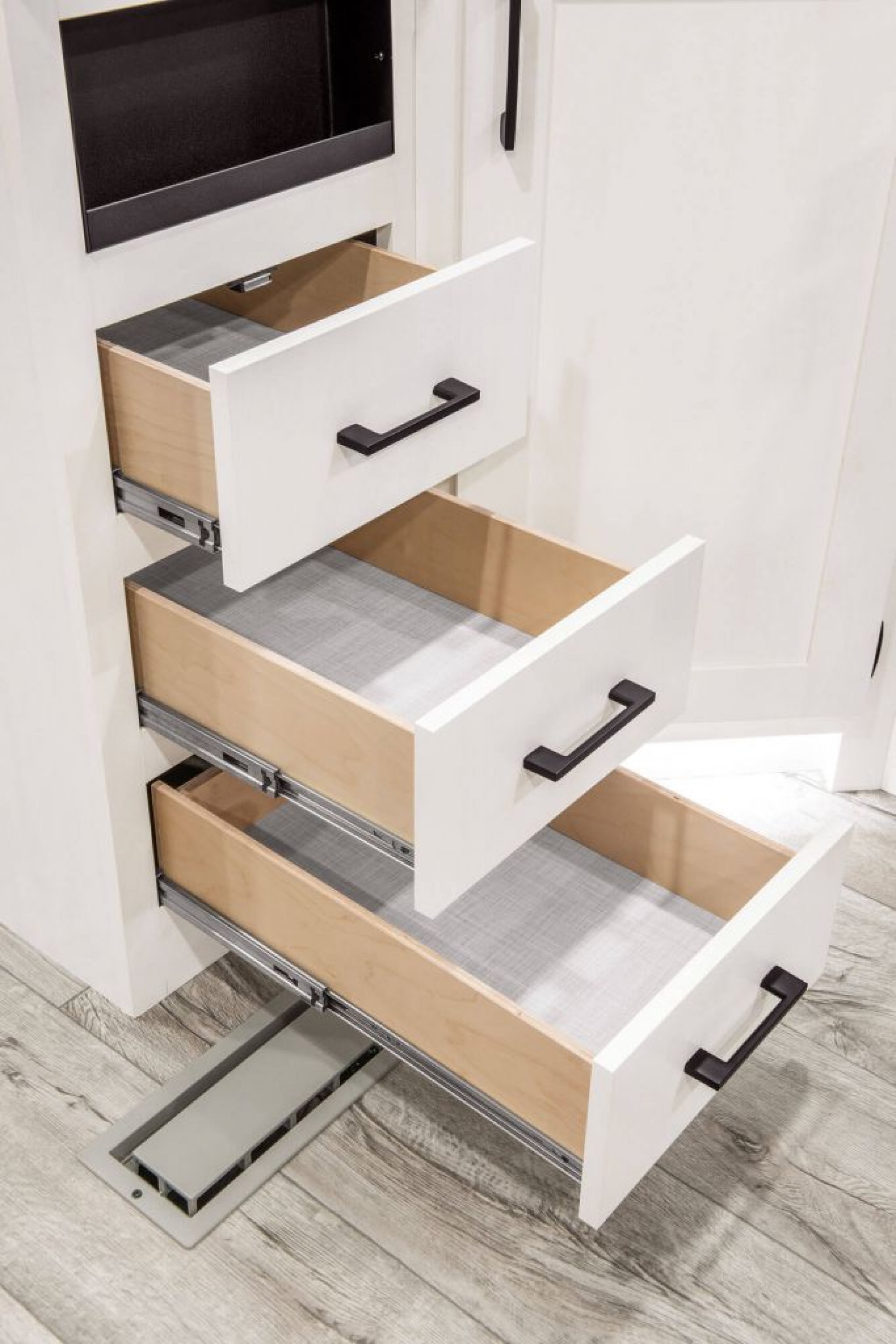 Tank Capacities: Fresh water 45?gal, Grey water 32?gal, Black water 32?gal – built for longer stays.