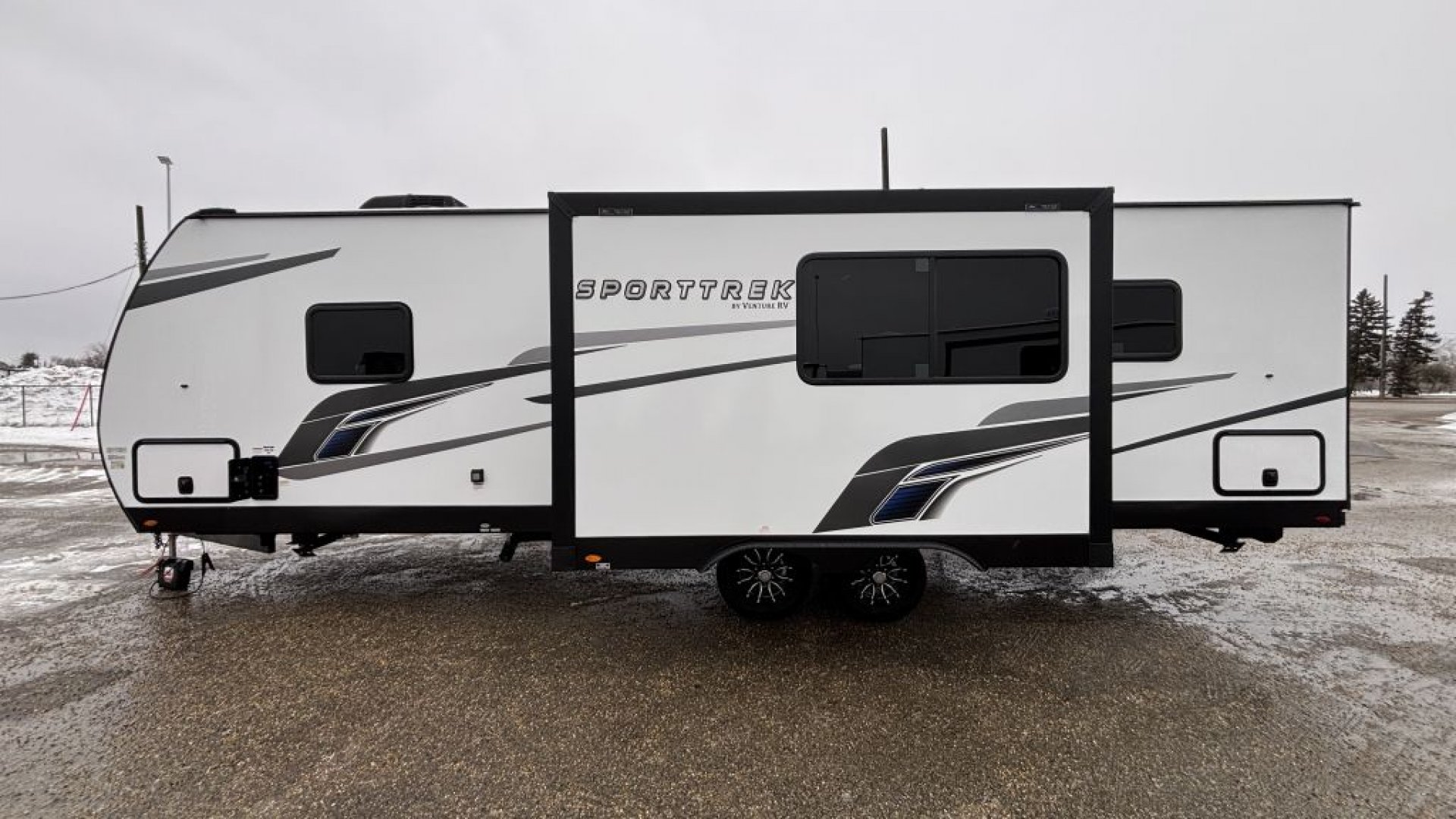 The 2026 Venture SportTrek 271VBH is the "Swiss Army Knife" of the SportTrek lineup—a clever, mid-sized bunkhouse that manages to cram high-end luxury into a more towable 33-foot frame. It’s specifically designed for active families who want the bells and whistles of a much larger rig without the intimidation of a 40-foot trailer.