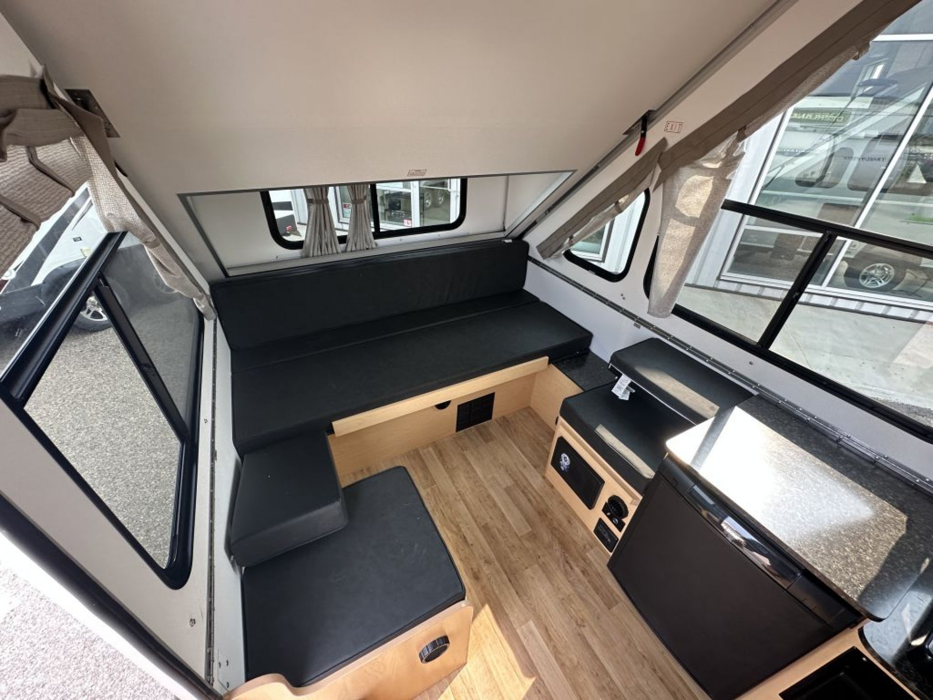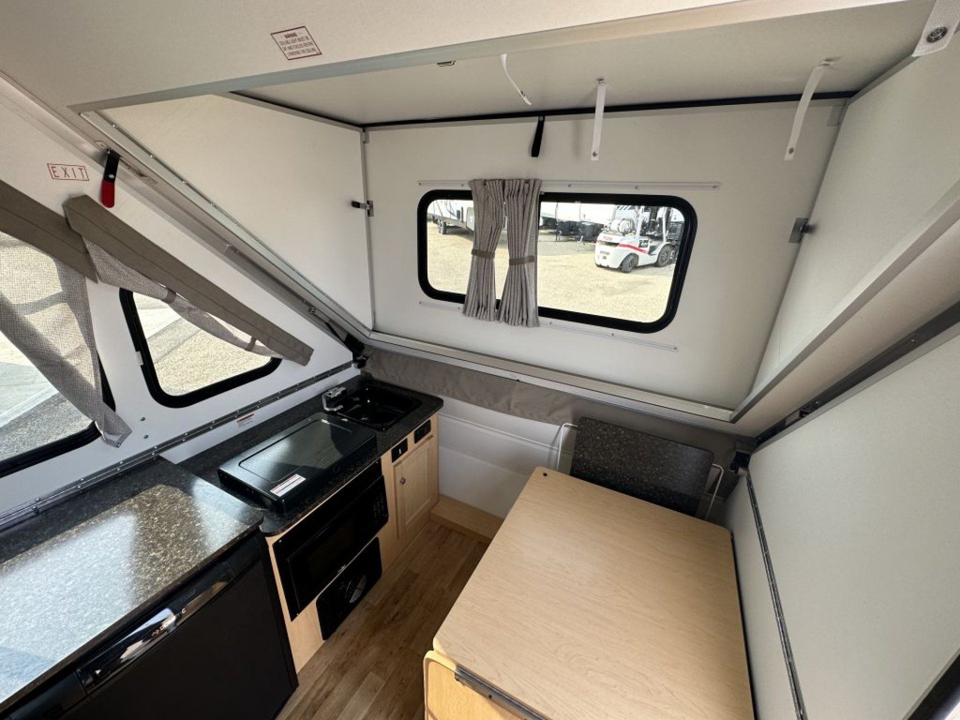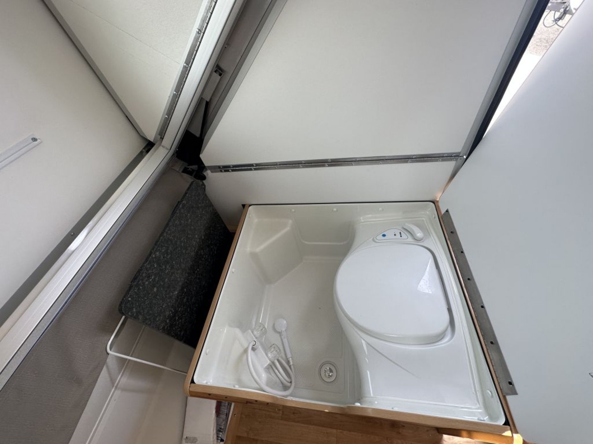 • A fully enclosed wet bath — a rare find in an A-frame camper — gives you true self-contained capability