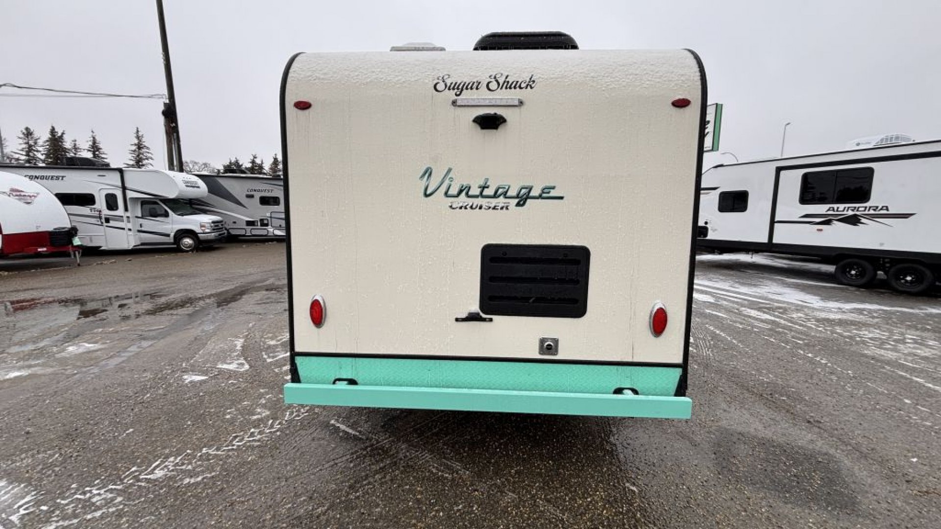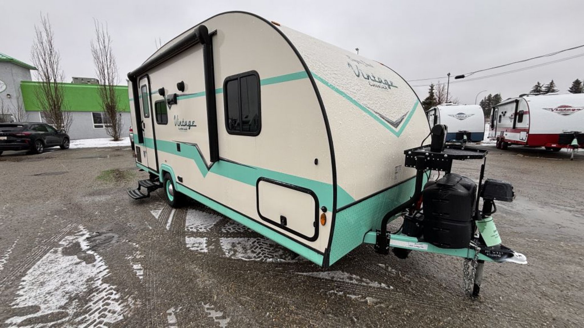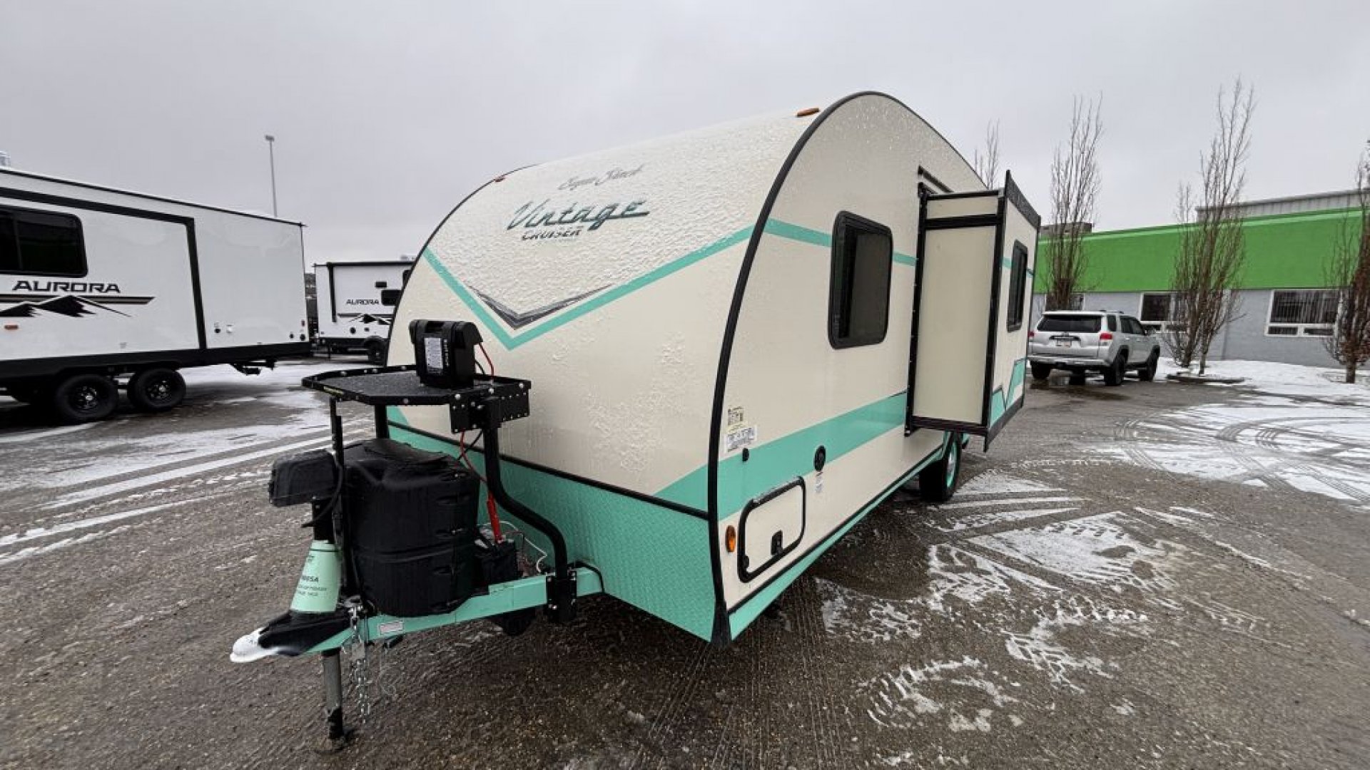 The 2023 Gulf Stream Vintage Cruiser 19CS is a "retro-modern" masterpiece that blends 1950s aesthetic—with lightweight, 21st-century construction. The "CS" stands for Camp-Side Dinette, putting your dining window right where the action is under the awning.